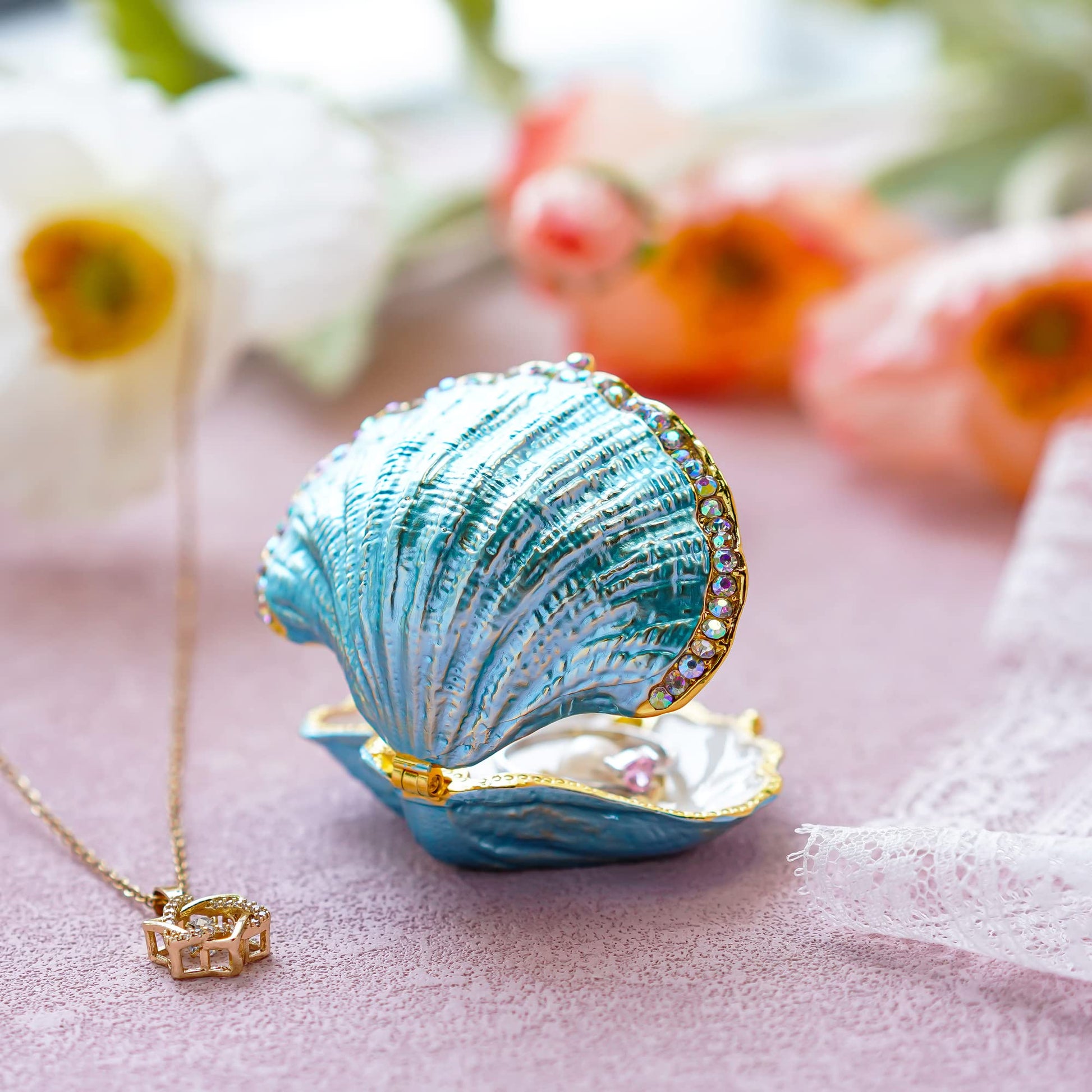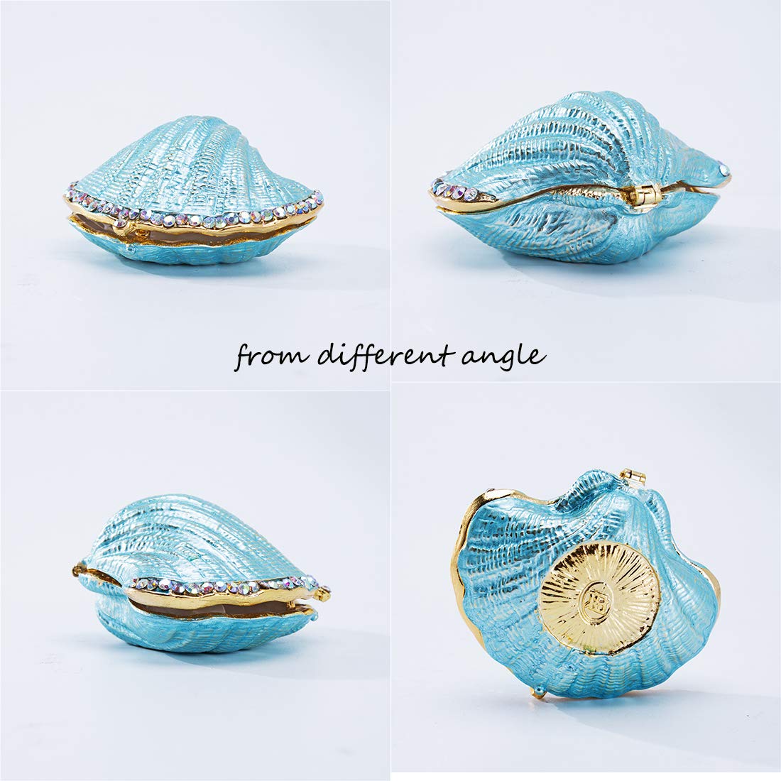 - Made of metal and crystal,packed with gift box.Makes a suitable and meaningful gift choice for mom,ladies,girls and those collects shells or trinket boxes on most occasions like Mother's day, Valentine's Day,Aniversary,birthday,Thanksgiving,Christmas,etc