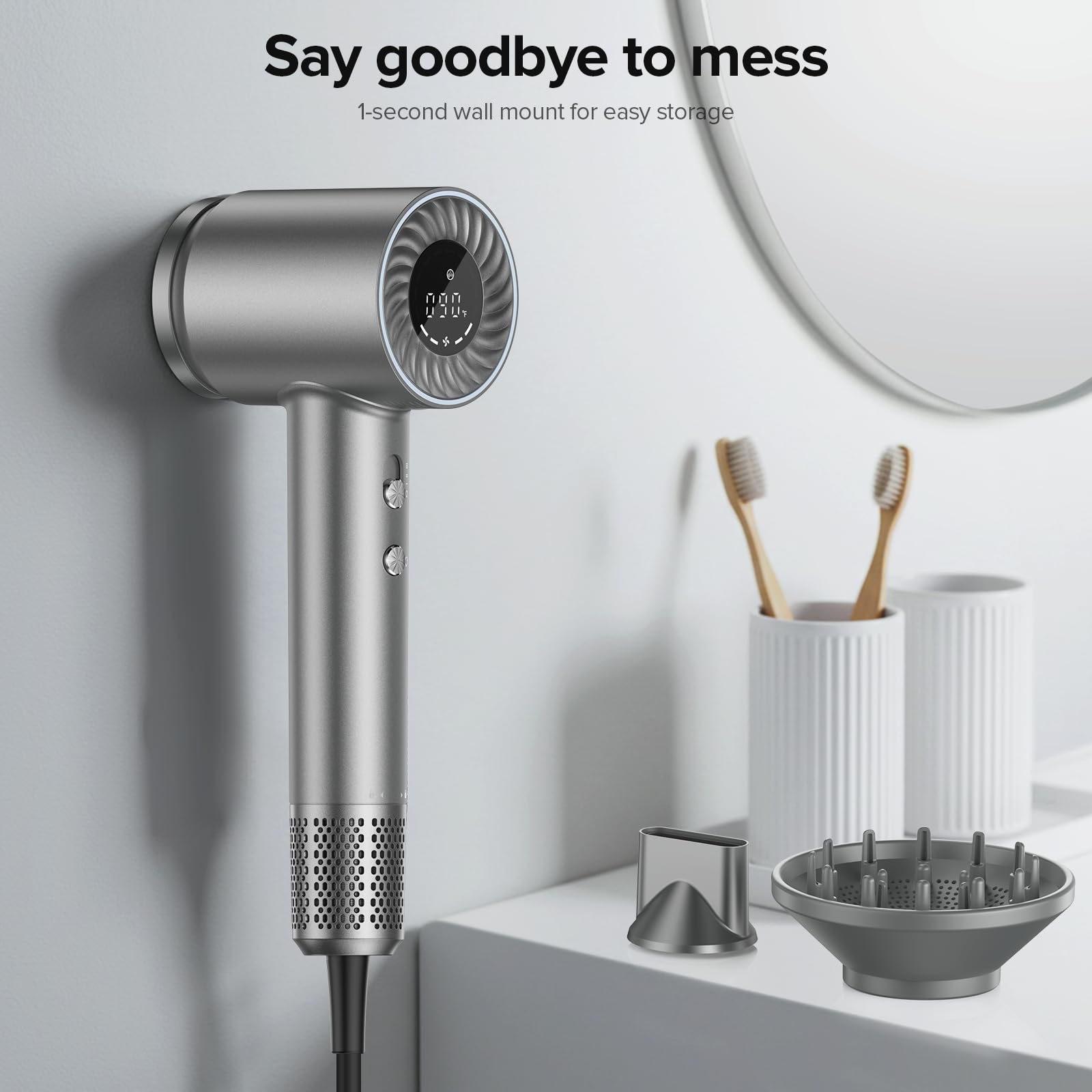 Hair Dryer, 150000 RPM Brushless Motor with 500M Negative Ions, Fast-Dry Lightweight Design, ThermoControl & Magnetic Nozzle/Diffuser, Low Noise Salon Blow Dryer for All Hair, Travel, Home