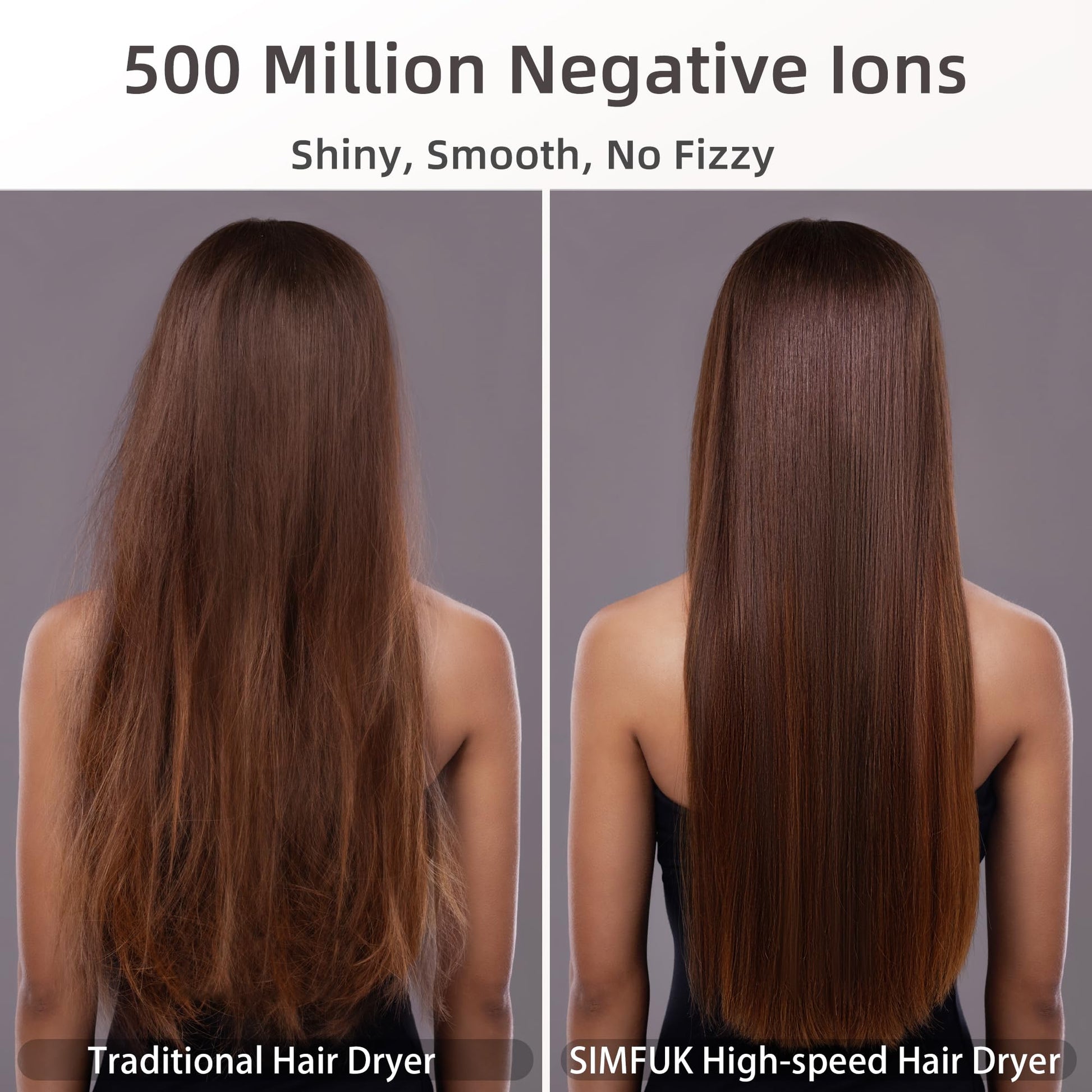 • 5 Billion Negative Ions|Say Goodbye to Frizz & Static:Releases high-concentration negative ions to neutralize positive charges in damp hair, reducing frizz, static, and tangles. Locks in moisture and enhances shine, leaving hair smoother, softer, and healthier—especially beneficial for dry, damaged, or color-treated hair.