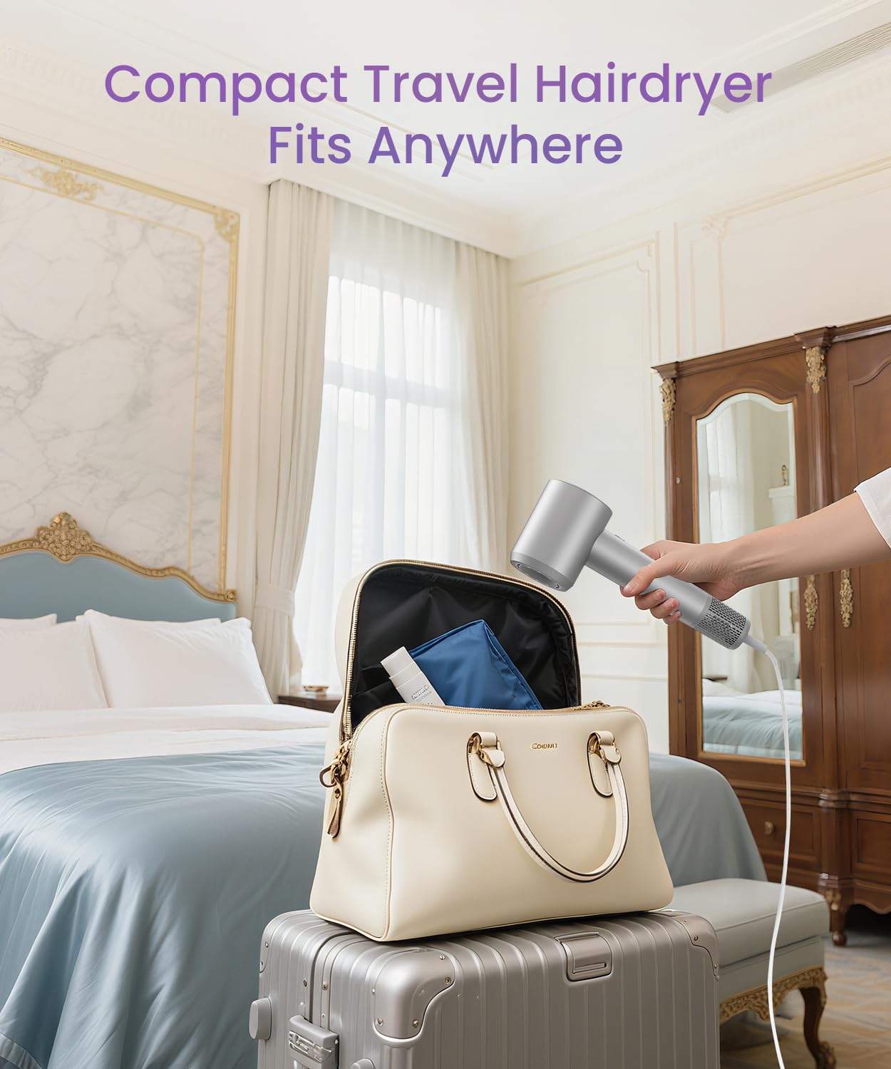 - 【Lightweight and Ergonomic Compact Design】Wtih a comfortable grip, 2 easy-to-operate buttons (switch/wind speed setting and temperature setting) and only 0.98 lb weight, this hair dryer for women is easy to hold for long periods and makes the hair drying process more comfortable, especially if you have long or thick hair. Fits neatly in bathroom drawers and is perfect for travel. And you will find it quiet during operation.