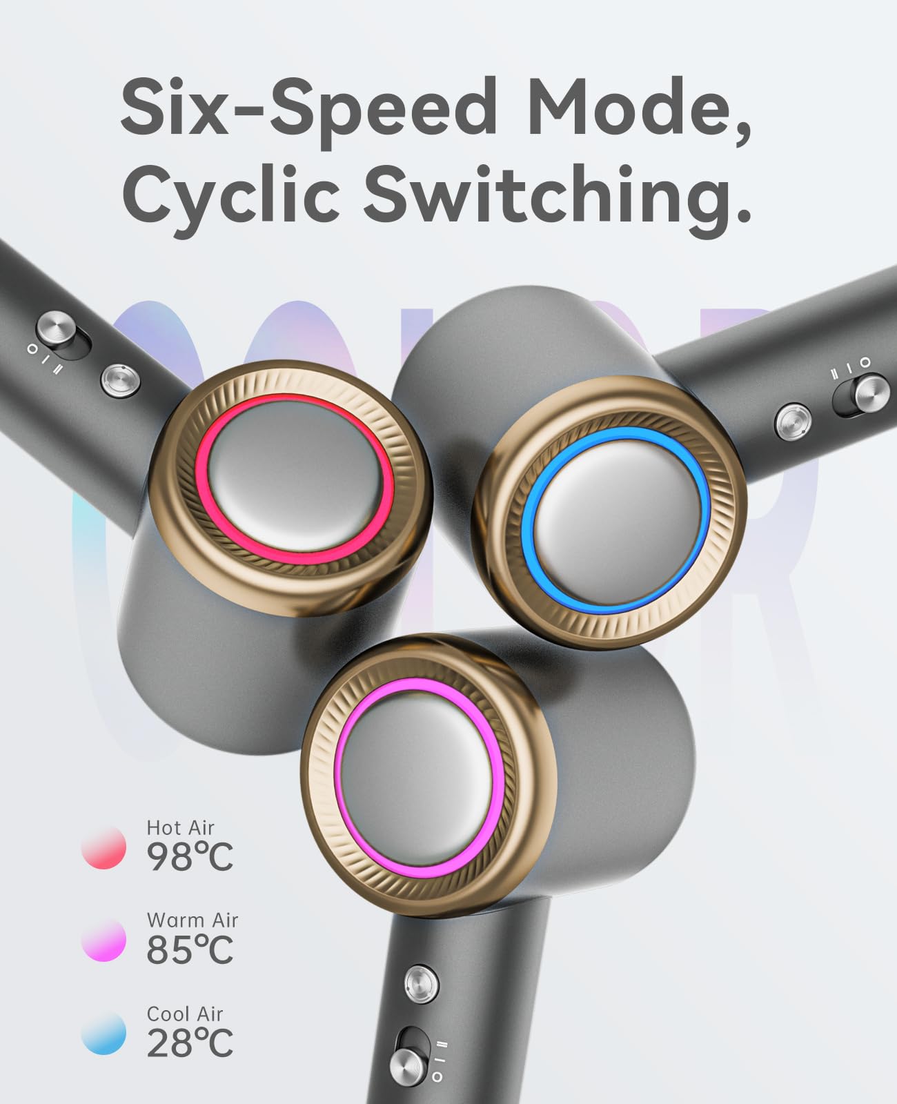 - Hairdryer with diffuser attachment: Magnetic nozzle and Magnetic attachments. 360° rotation for convenience and durability. Suitable for curly hair, straight hair and all hairstyles.