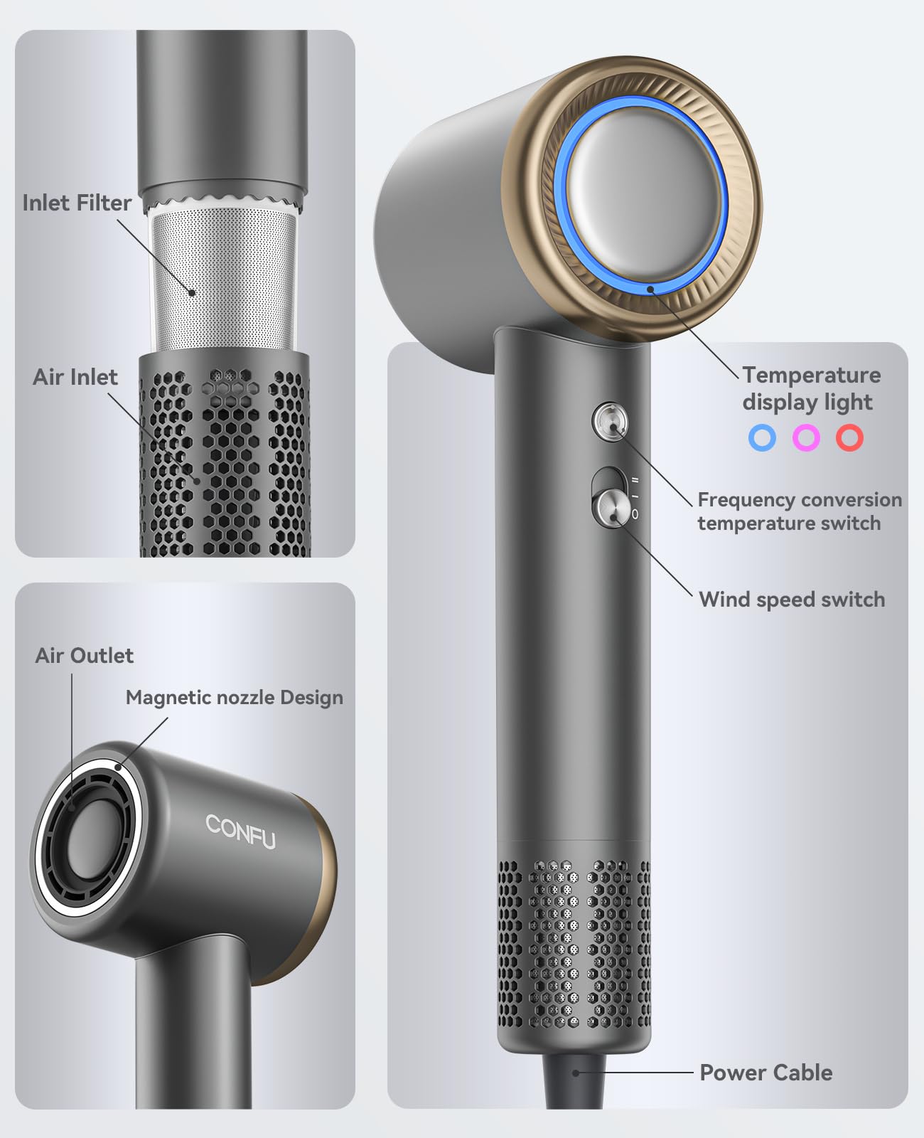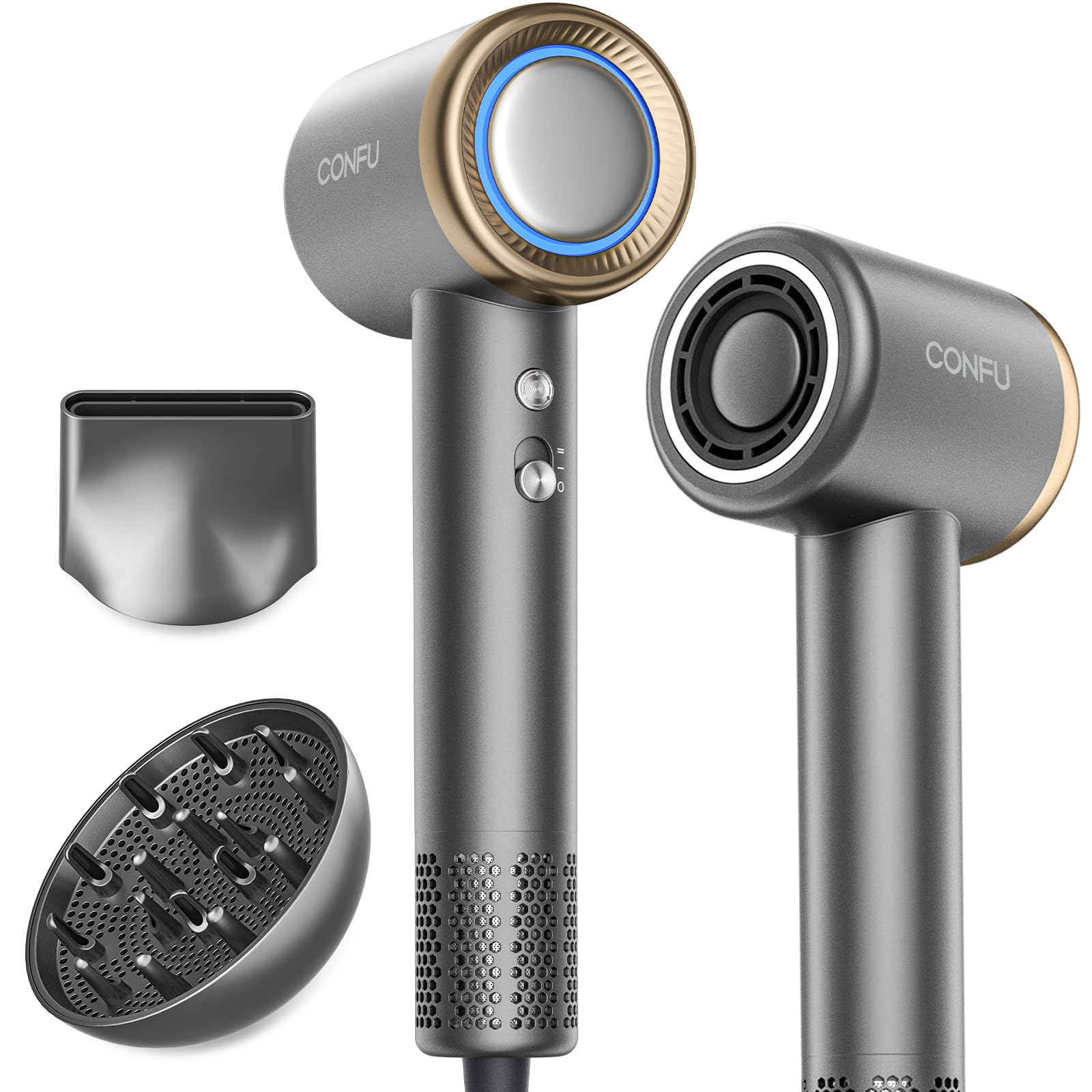 - Professional high - Speed hair dryer: CONFU's own high-speed brushless motor, the blower is equipped with a 110,000 RPM high-speed brushless motor blower, with stronger center of attention and better performance. 0.001mm ultra-precision machining, from CONFU's rigorous standards of workmanship and quality control standards, to ensure the overall quality and performance of the motor.