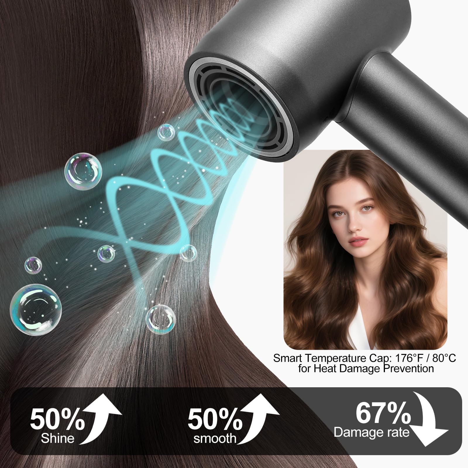 Hair Dryer High-Speed Ionic Low Noise Blow Dryer with Brushless Motor for Fast Drying, Smart Temperature Control, Lightweight, for Home Travel Salon