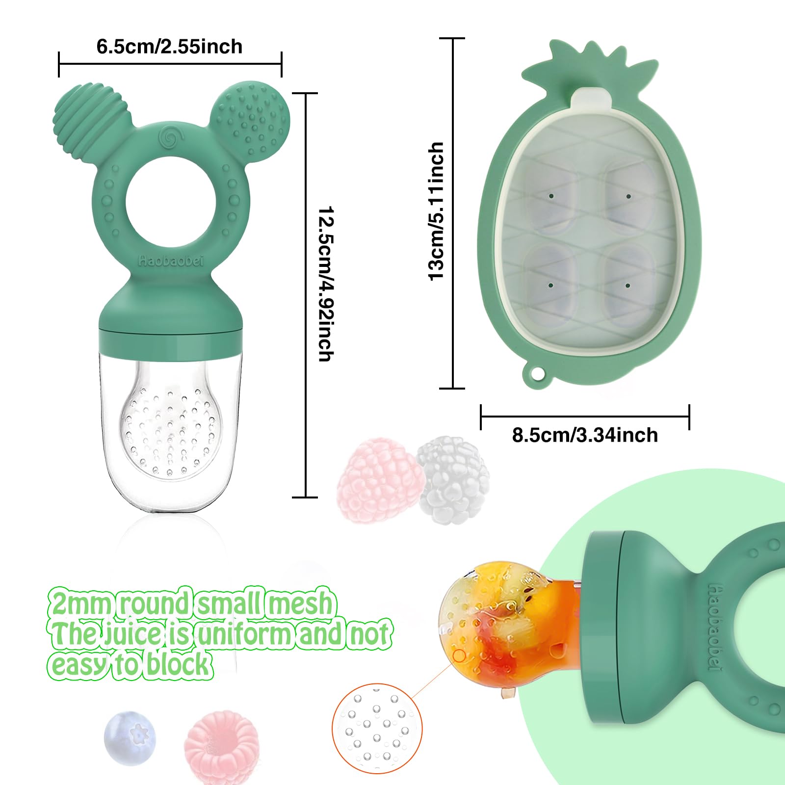 HAOBAOBEI Teething Toys, Baby Fruit Food Feeder, Breastmilk Popsicle Molds for Baby Cooling Relief (Green, Mini Mouse)