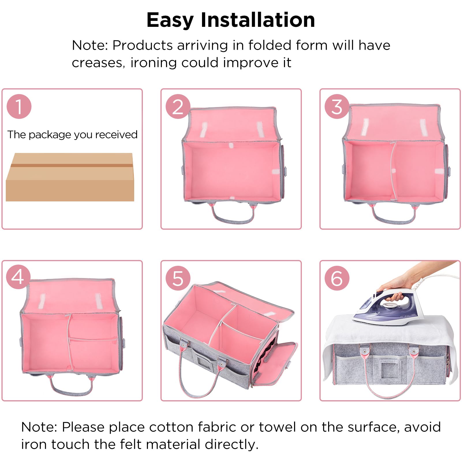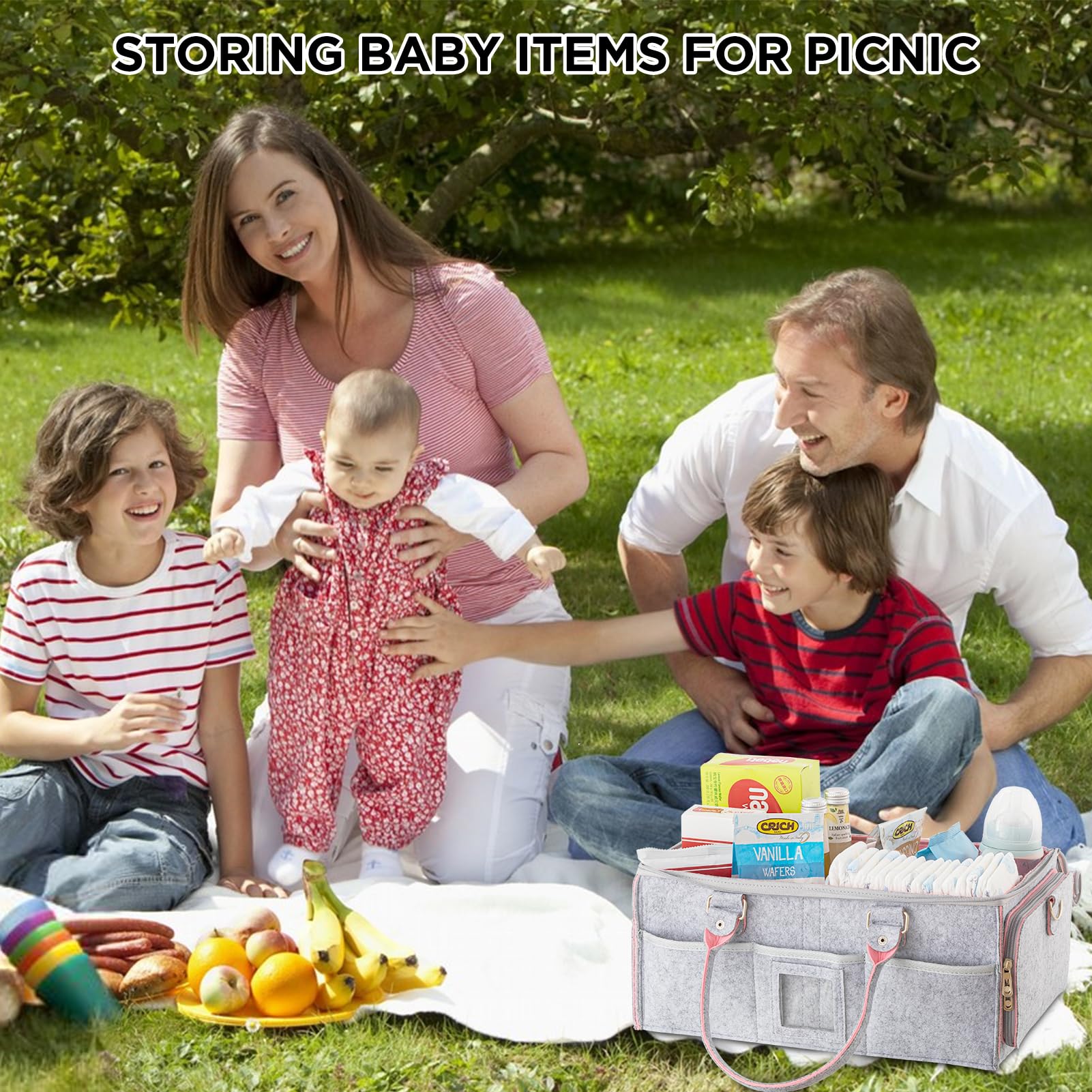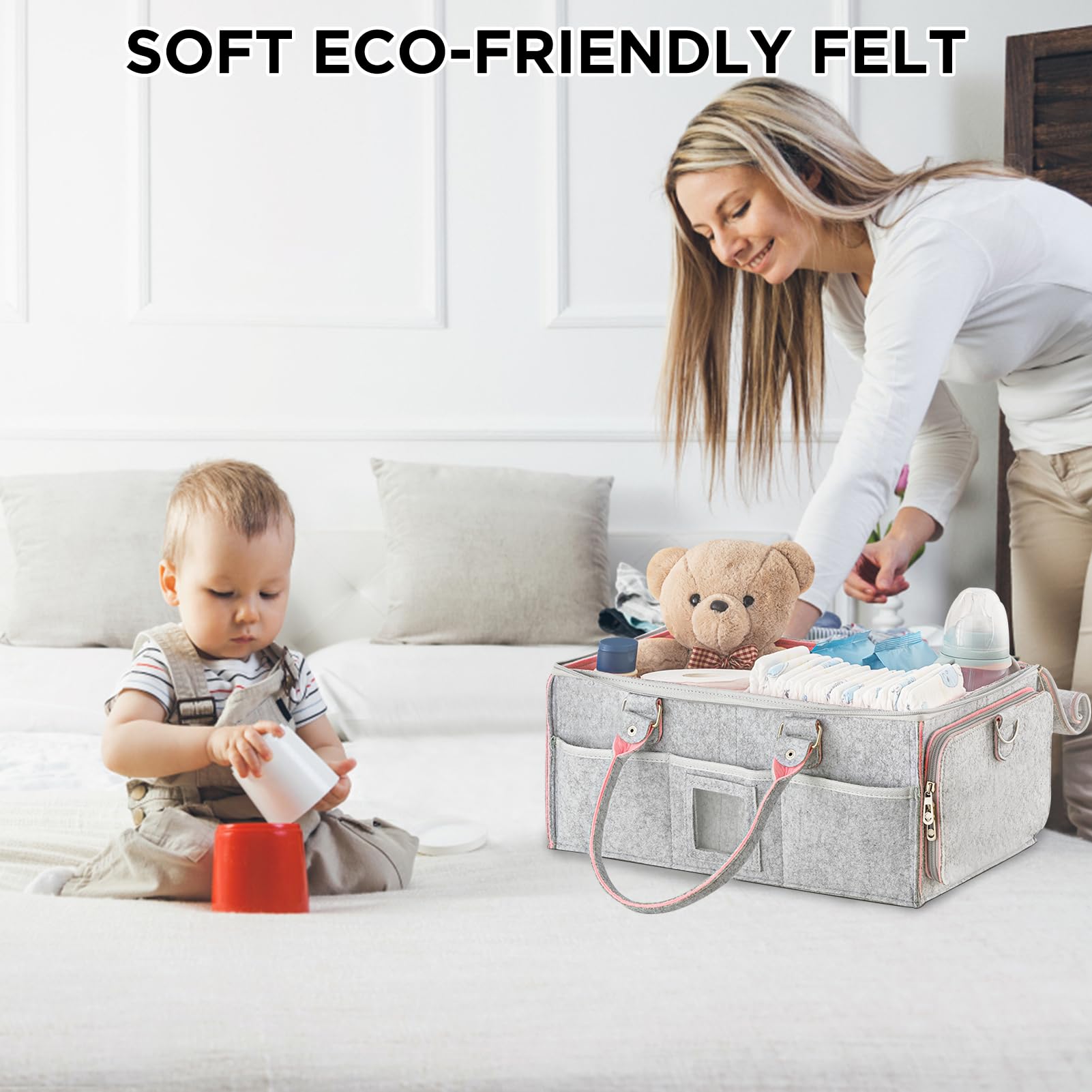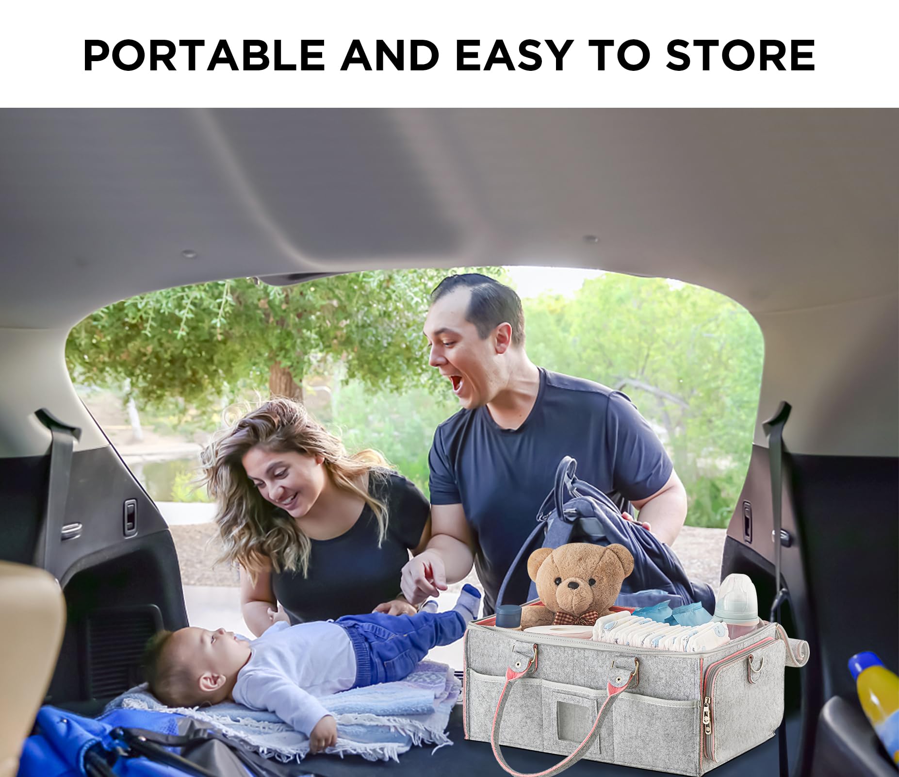 - PREMIUM MATERIAL: The foldable Diaper Caddy Organizer is made of high quality felt material, environmentally friendly, long-lasting and durable for infant boy/girl.