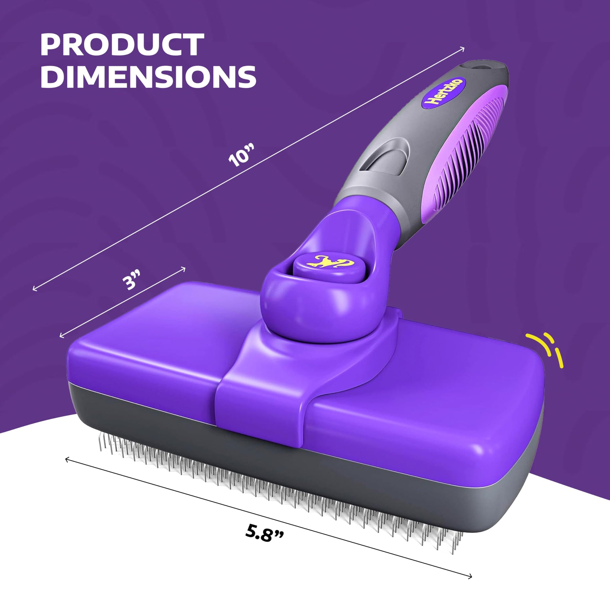 Hertzko Self Cleaning Slicker Brush for Dogs and Cats - Pet Hair Brush for Shedding Long and Short Hair - Easy Clean Retractable Bristles - Cat and Dog Grooming Tool - Purple