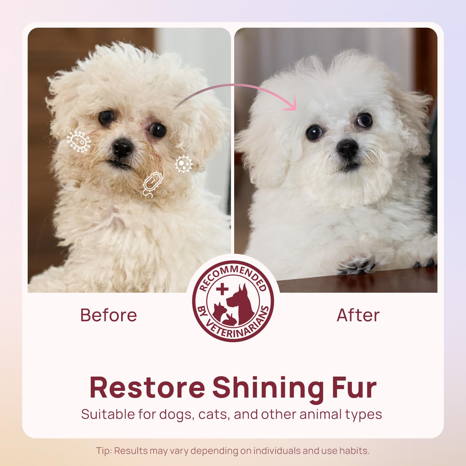 - Safe Formula For Pets: Made with EDI-purified water with the US Pharmacopoeia and 7 naturally ingredients: fermented coconut oil, hyaluronic acid, vitamin E, Damask, aloe vera, chamomile, and oat extract, it can quickly remove stubborn secretions and odors, and moisturize and smooth the fur.