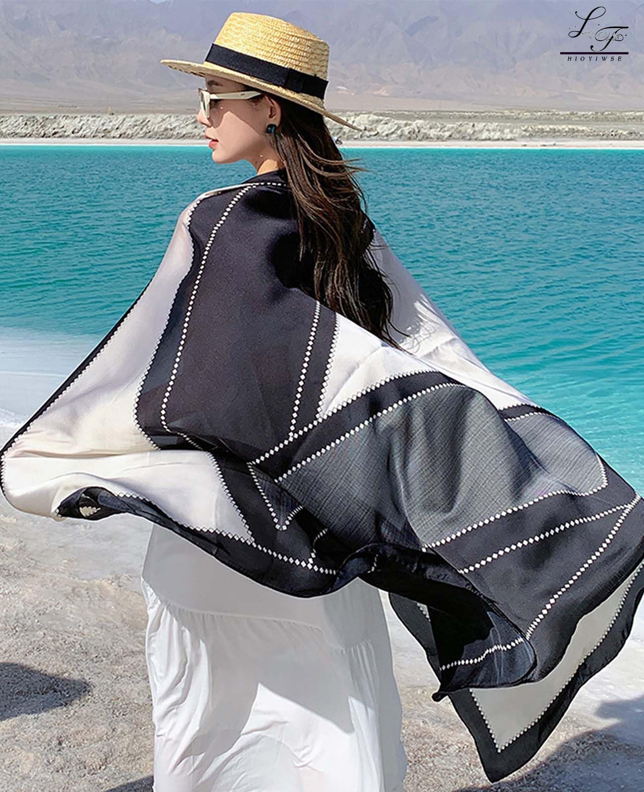 - 【Beautiful and versatile】Silk scarf soft and smooth, warm in winter and cool in summer, silk scarf is very large, can be used as a cape, scarf, belt, around the neck and so on where he needs it