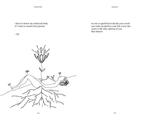 rupi kaur constantly embraces growth, and in home body, she walks readers through a reflective and intimate journey visiting the past, the present, and the potential of the self. home body is a collection of raw, honest conversations with oneself - reminding readers to fill up on love, acceptance, community, family, and embrace change. illustrated by the author, themes of nature and nurture, light and dark, rest here.