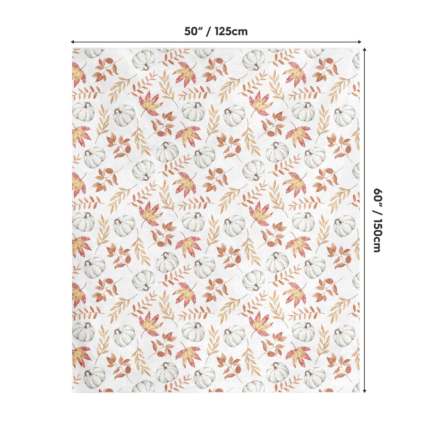 Horaldaily Fall Flannel Blanket Throw, White Pumpkin Orange Leaves Soft Fuzzy Plush Cozy Fleece Blankets for Couch Sofa Bed Lounging, Ideal Gifts for Kids Adults Wife Self, 50x60
