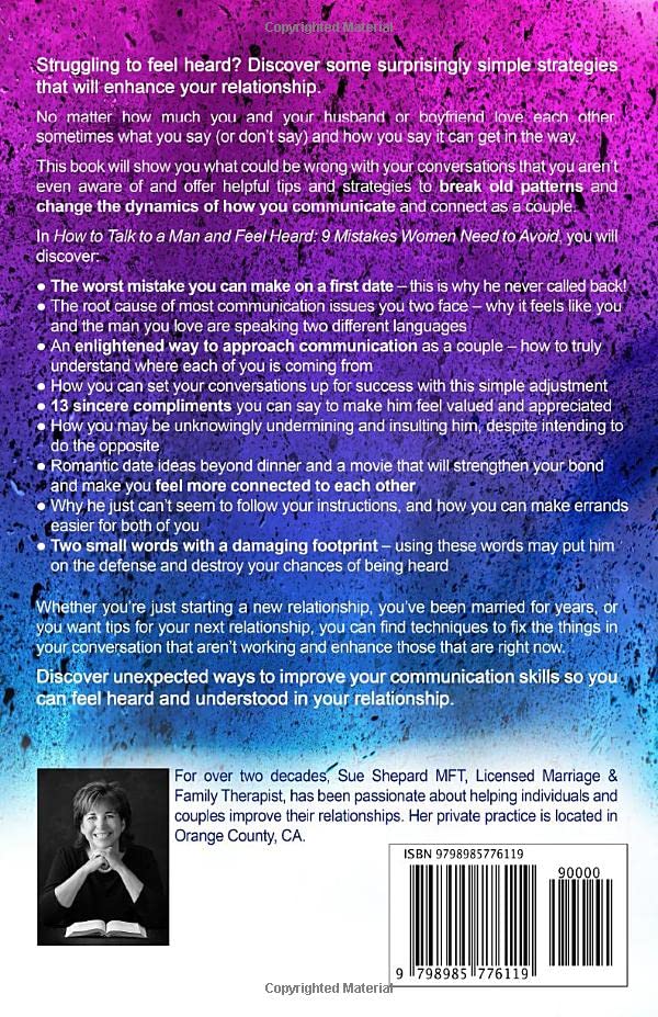 In How to Talk to a Man and Feel Heard: 9 Mistakes Women Need to Avoid, you will discover: The worst mistake you can make on a first date – this may be why he never called back! The root of most communication issues you two face – why it feels like you and the man you love are speaking two different languages An enlightened way to approach communication as a couple – how to truly understand where each of you is coming from How you can set your conversations up for success with this simple adjustment 13 sincere compliments you can say to make him feel valued and appreciated How you may be unknowingly undermining and insulting him, despite intending to do the opposite Romantic date ideas beyond dinner and a movie that will strengthen your bond and make you feel more connected to each other Why he just can’t seem to follow your instructions, and how you can make errands easier for both of you Two small words with a damaging footprint – using these words will put him on the defense and destroy your chances of being heard