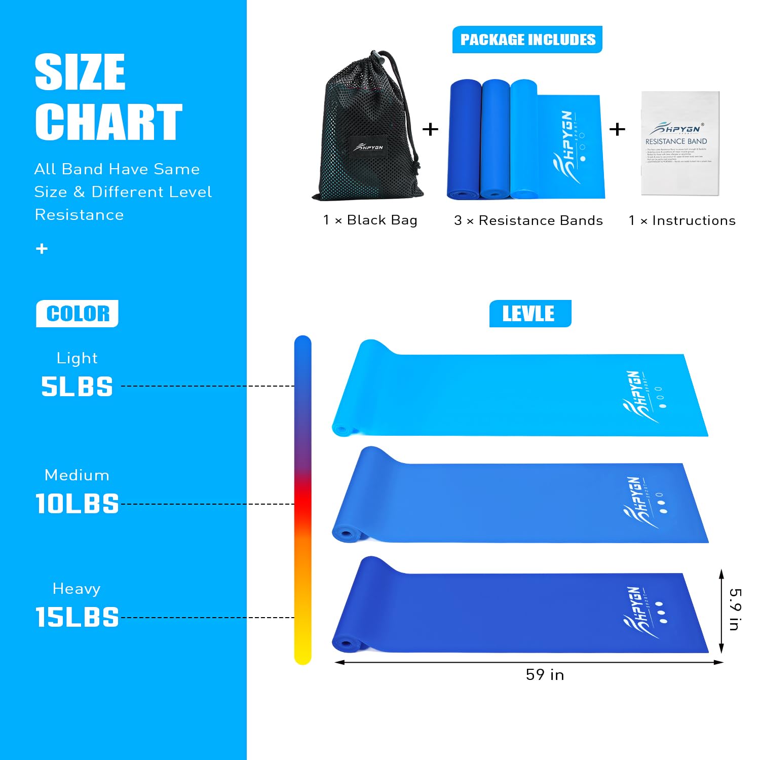 HPYGN Exercise Bands, Resistance Bands for Working Out Women and Men, Physical Therapy, Yoga, Pilates, Rehab, Fitness, Strength Training Starter Set Suitable for Home Workouts or The Gym Workouts