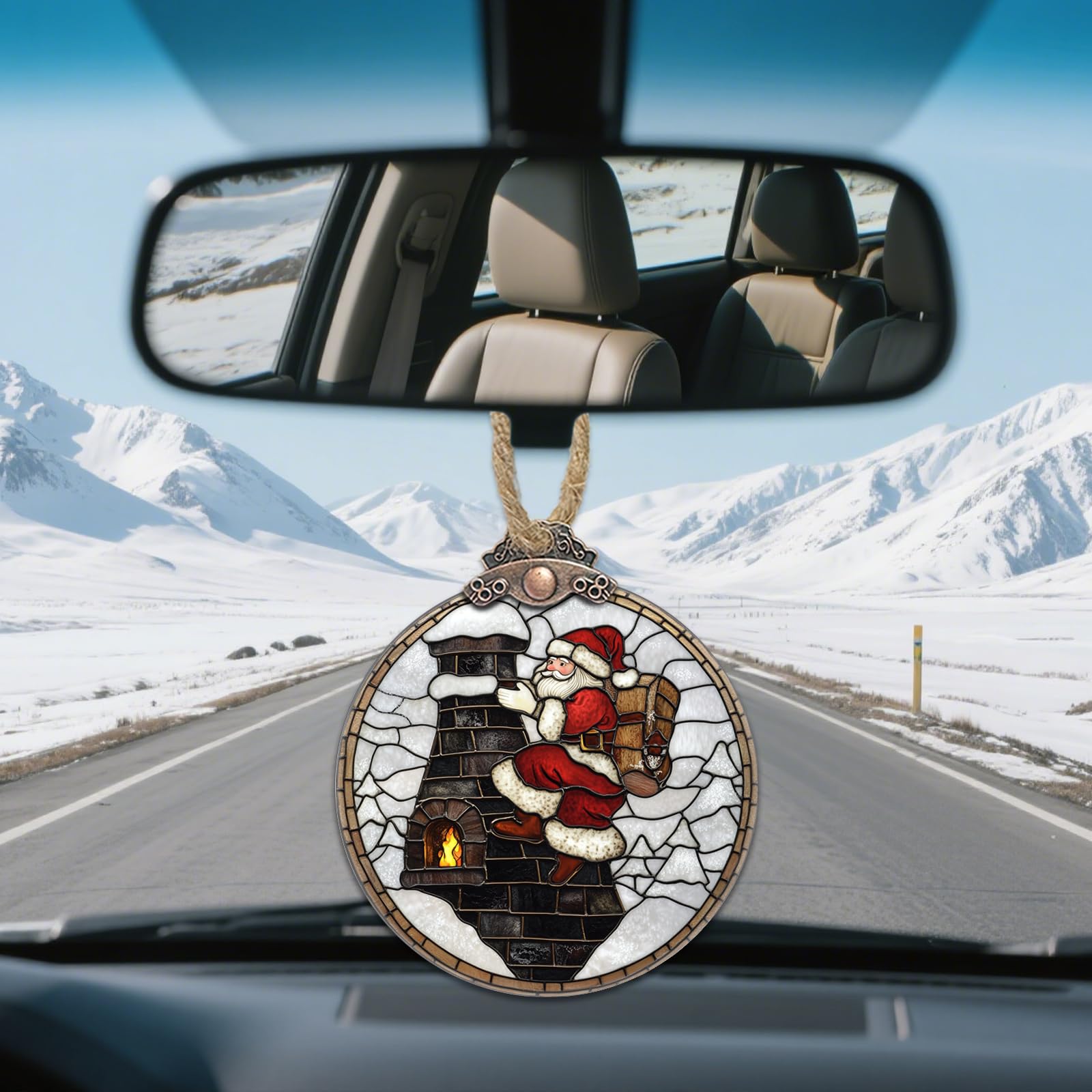 HWRHTR Stained Glass Christmas Decorations, Santa Claus Chimney Suncatcher for Window Christmas Tree Hanging Ornaments White Sun Catcher Xmas Decor Gifts for Little Girl Women Men Mom Nana Friend