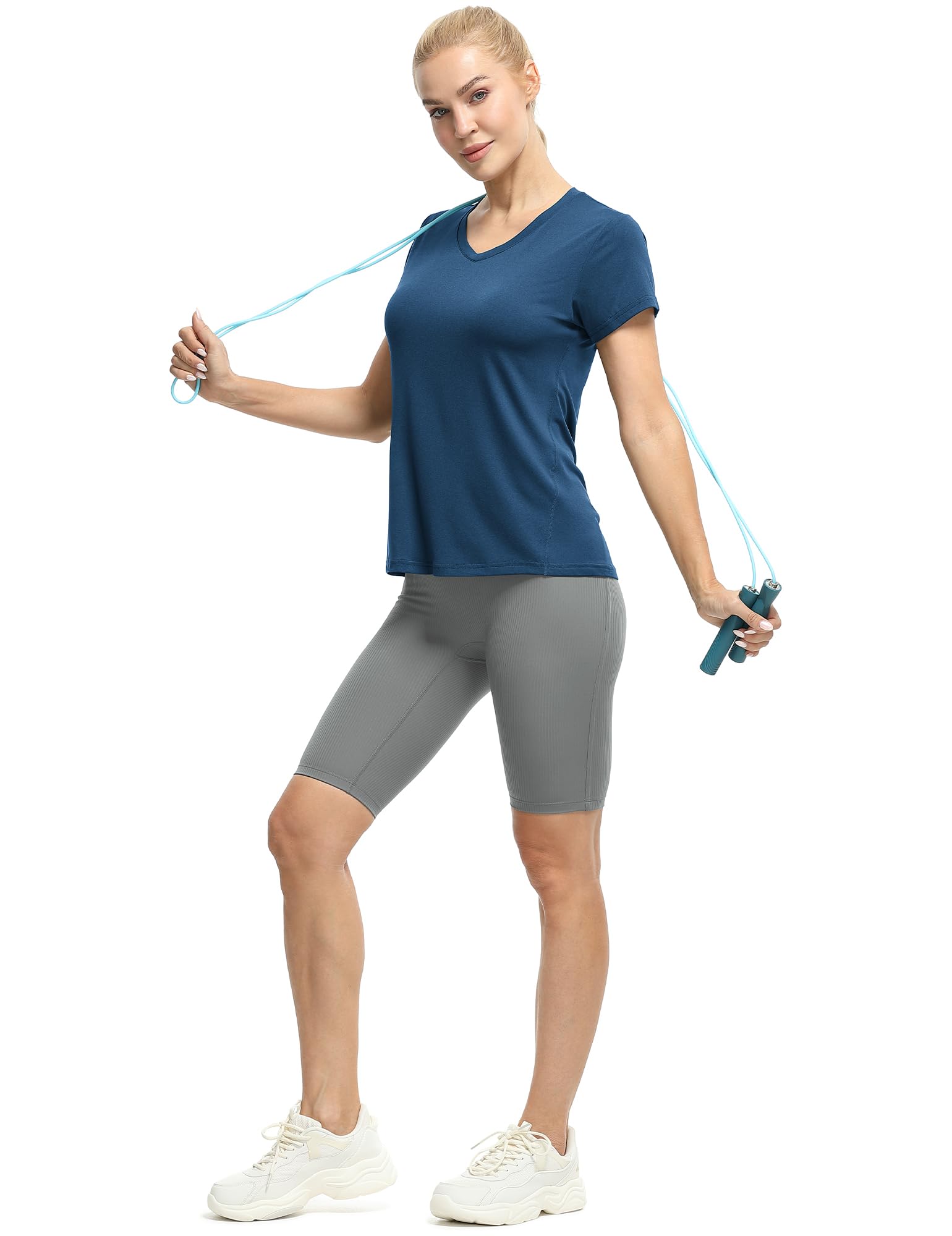 icyzone Workout Shirts Yoga Tops Activewear V-Neck T-Shirts for Women Running Fitness Sports Short Sleeve Tees (Dark Grey/True Navy/Aqua, S)