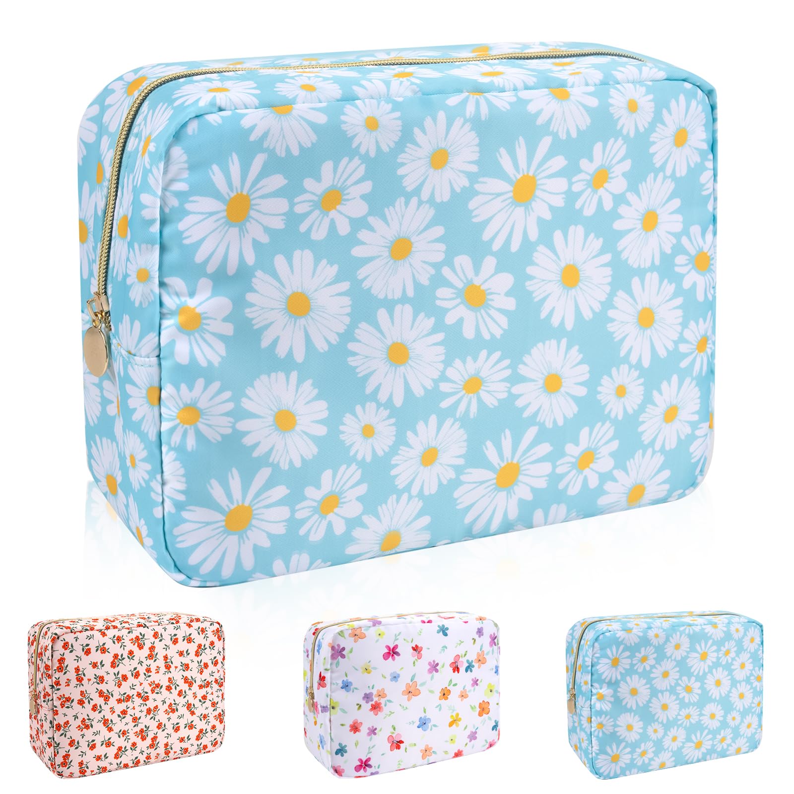 Iqimott Nylon Large Makeup Bag Travel Pouch, Preppy Big Cosmetic Bag Makeup Organizer Nylon Large Capacity Toiletry Bag, Waterproof Large Zipper Pouch Storage Bag for Women Girls Teens(Pink)