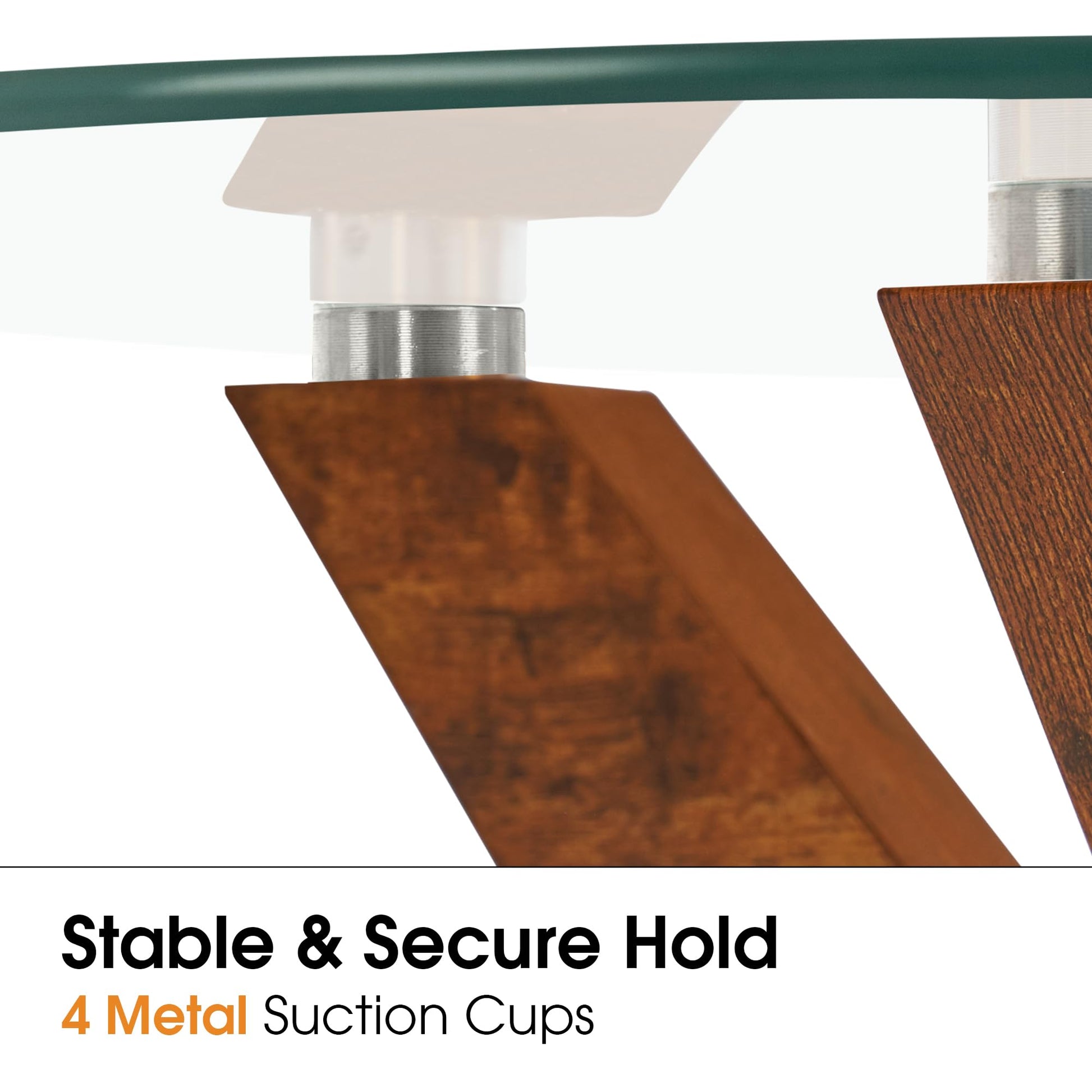 - Secure Hold by 4 Metal Suction Cups: Metal suction cups provide a secure and stable connection between the glass top and the wooden base—without the need for drilling or adhesives