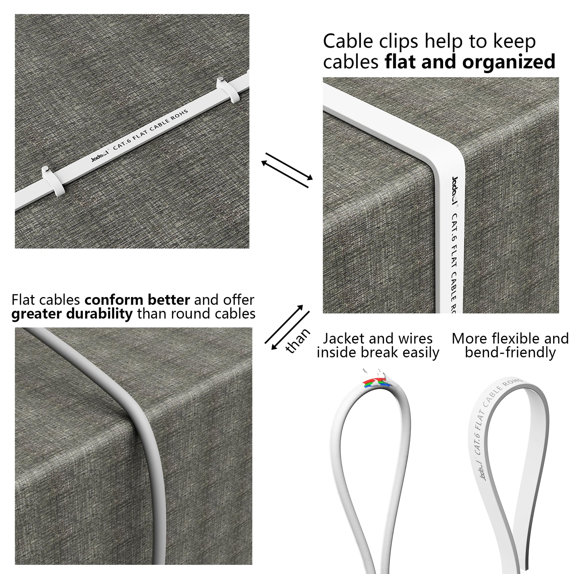 Jadaol Cat 6 Ethernet Cable 50 ft, Outdoor & Indoor 10Gbps Support Cat8 Cat7 Network, Flat RJ45 Internet LAN Computer Patch Cable for Router, Modem, Switch, Gaming Consoles, Streaming Devices, White