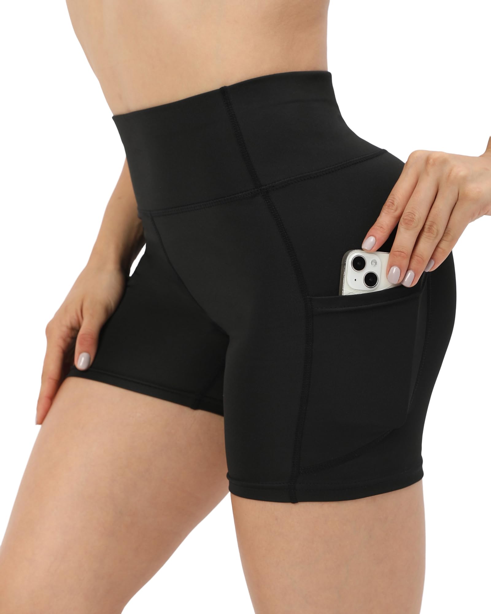 - [DEEP TWO SIDE POCKETS] The biker shorts woemn are added 2 pockets on each side so that you can save your phone,card,keys and other small items.And If you like listening music while walking,fitness or running,these pockets will keep your phone or ipod well.
