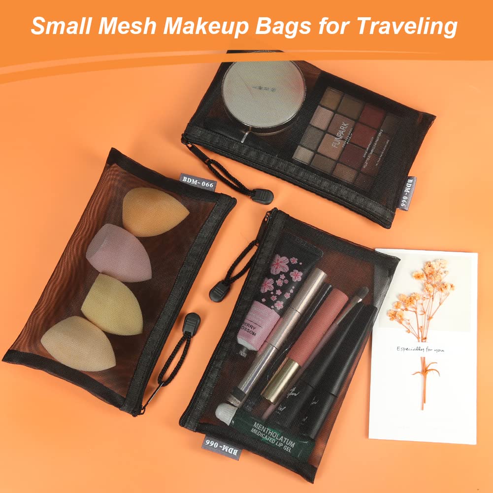 JOINDO 6 Pcs Small Makeup Bag for Purse, Mesh Cosmetic Bags, Portable Mesh Zipper Pouch Toiletry Bag Organizing Pouches for Travel (Black)