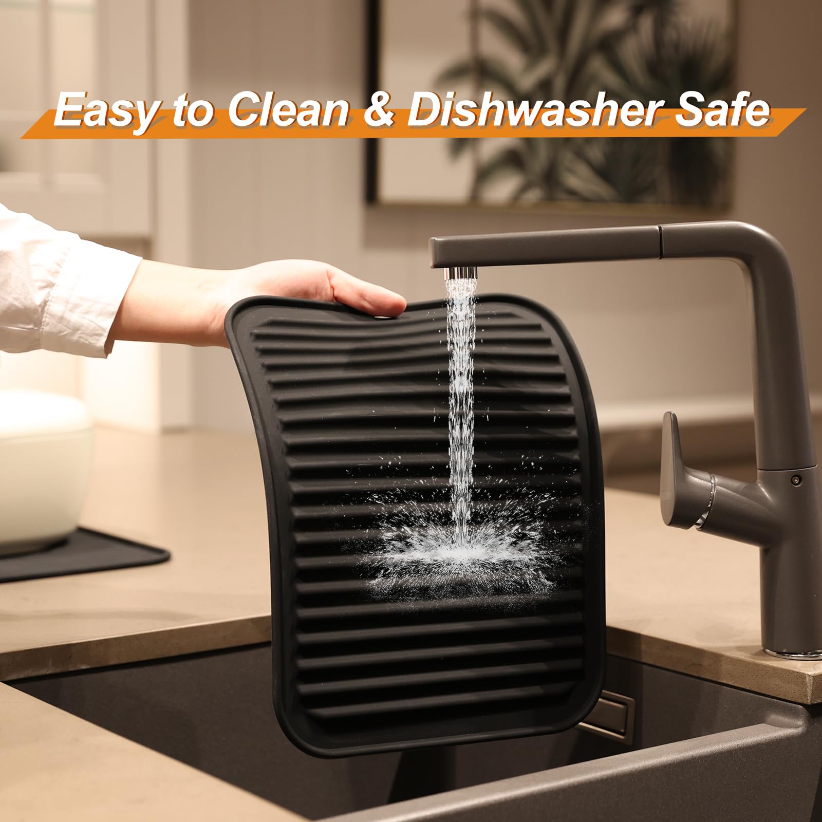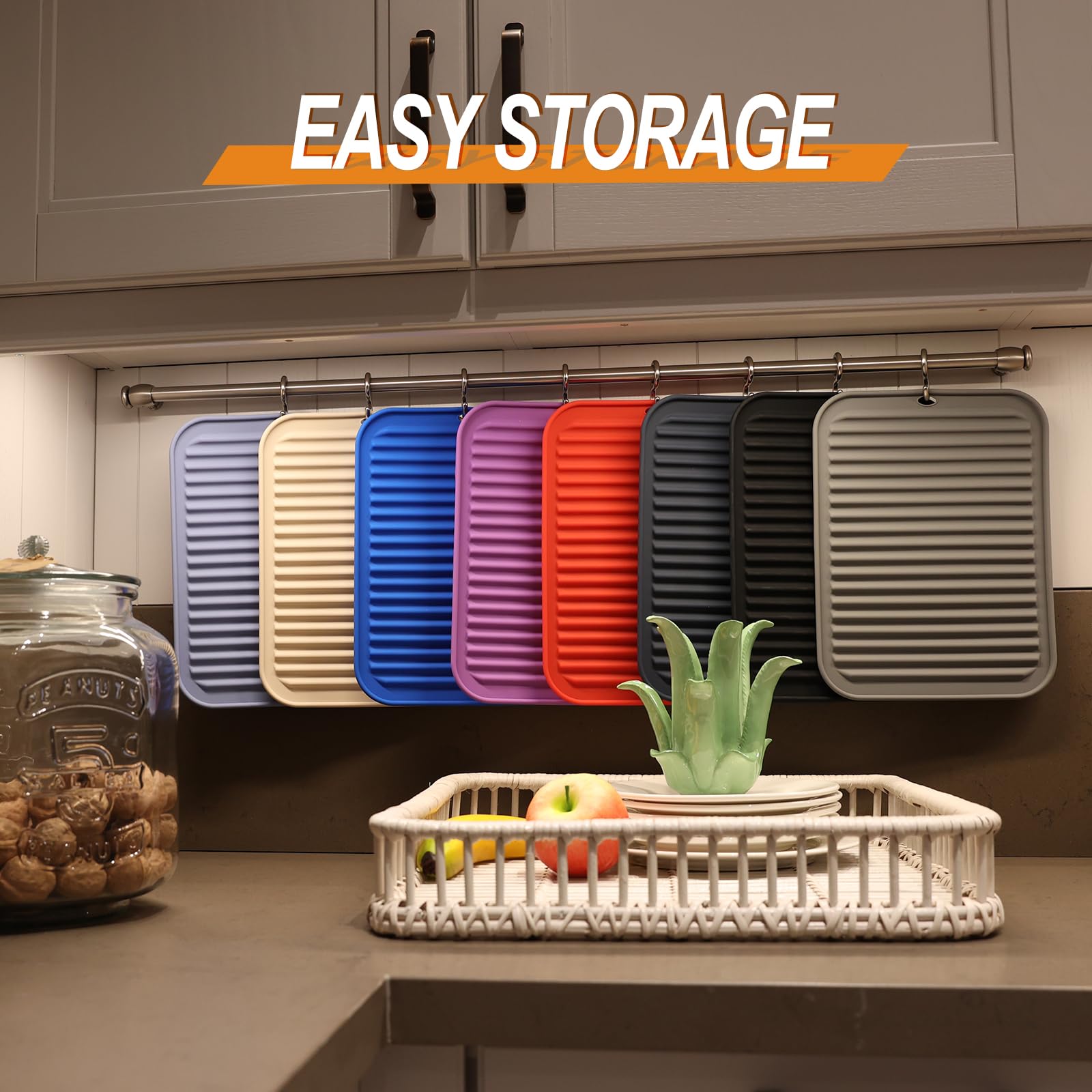 - EASY TO CLEAN & DISHWASHER SAFE - These trivets for quartz countertops are waterproof, plus stain and odor resistant. These kitchen hot pads are safe to pop in the dishwasher. It is non-stick and easy to clean. Roll up or hang on hook, save space. Experience a more convenient kitchen environment with these silicone trivet.