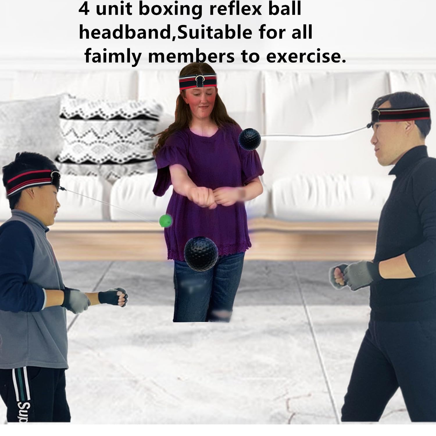 - 1,Boxing Reflex Ball Headband Set for Mixed martial arts Boxing Kickboxing Training Reactivity Punching Balls Kit includes 4 PU balls+4 elastic headbands+4 spare lines+4 gloves+4 thread needle for everyone in the family.Persistent training is the key to becoming a king.