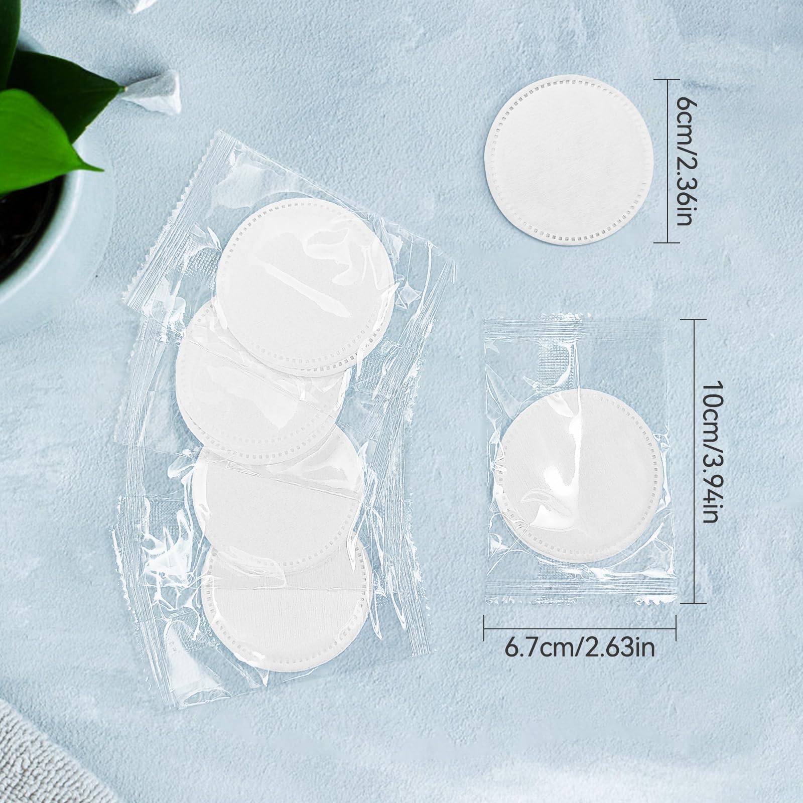 - The size for individually packed cotton pads diameter is 6cm/2.36'.
