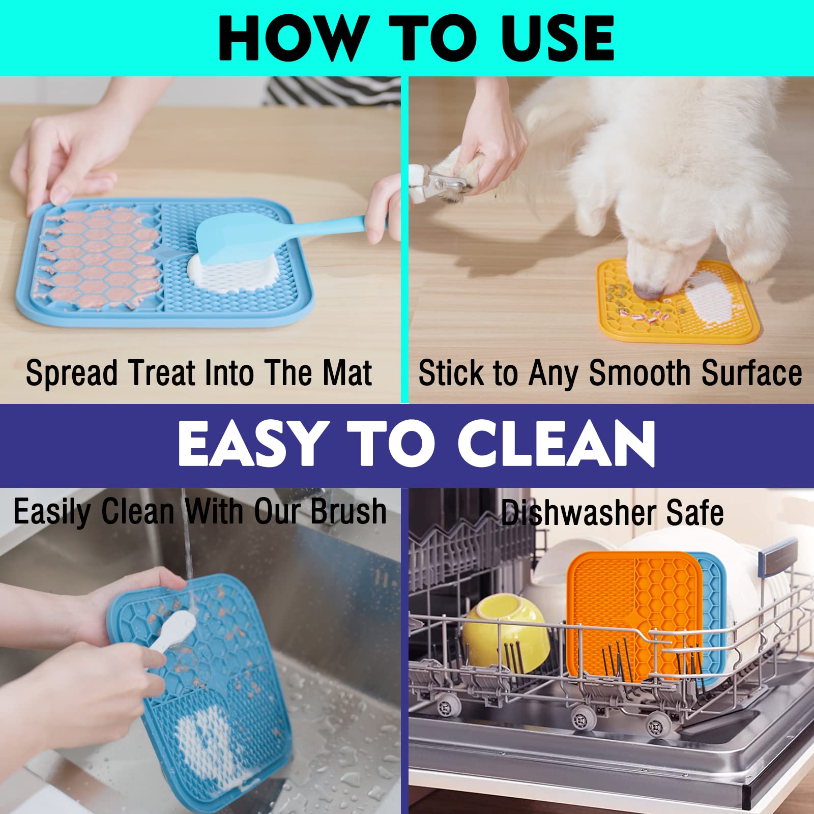 - Environmentally Friendly Material: Our pet licking mat are made of Food-Grade Silicone,safe and durable. NOTE: THIS SLOW FEEDER MAT IS NOT A DOG CHEW TOY. Please supervise your pets.