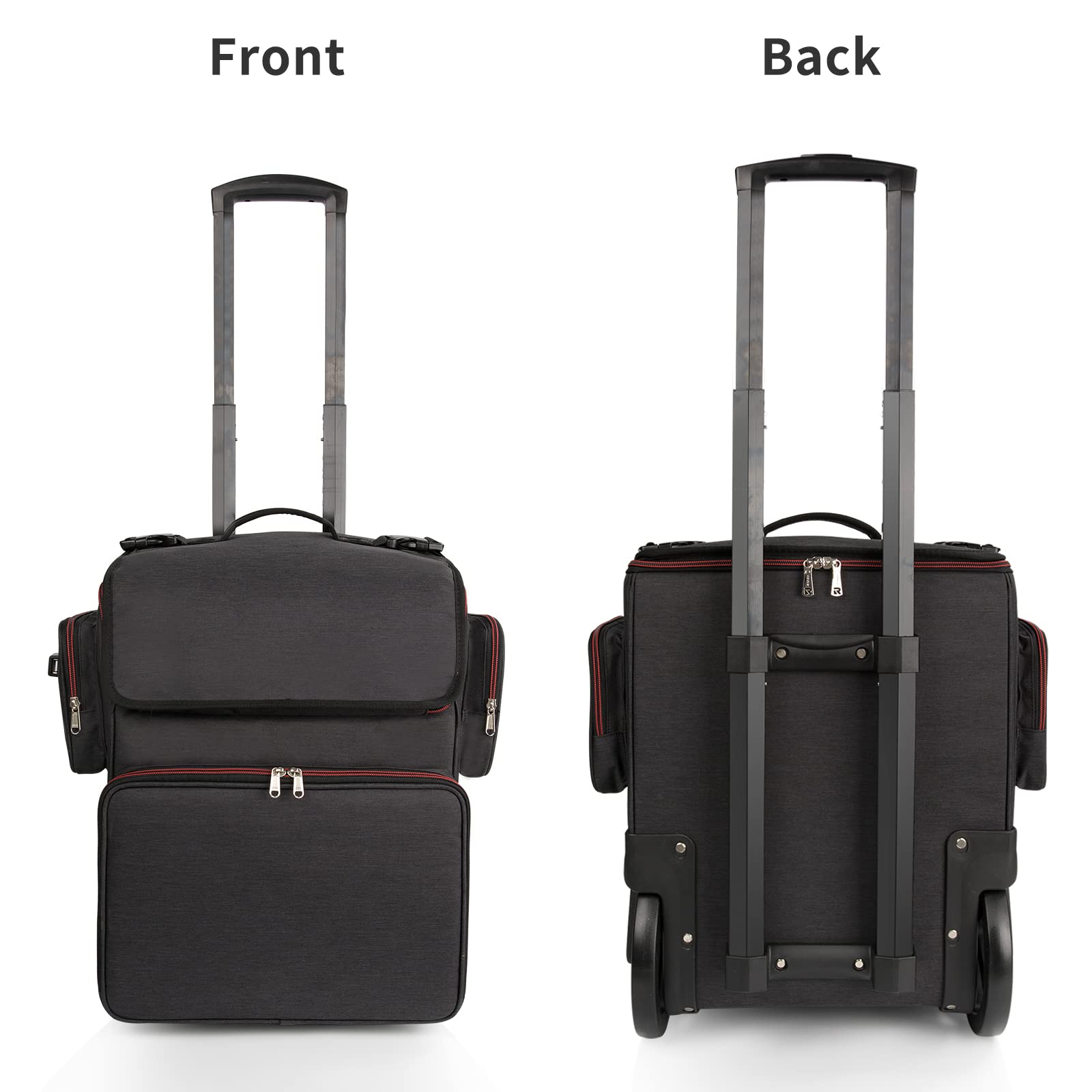 - Durable & Light Weight - Our Rolling Makeup Case with wheels, made of 1680D oxford nylon fabric for wear-resistance and not easy to scratch. The sturdy and smooth metal zipper is more textured and durable. the makeup case‘s h’andle with two pressure relief snaps allows it can withstand more pressure