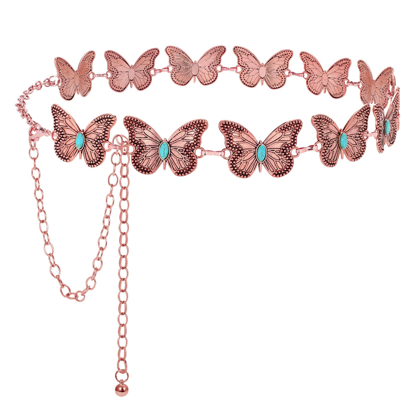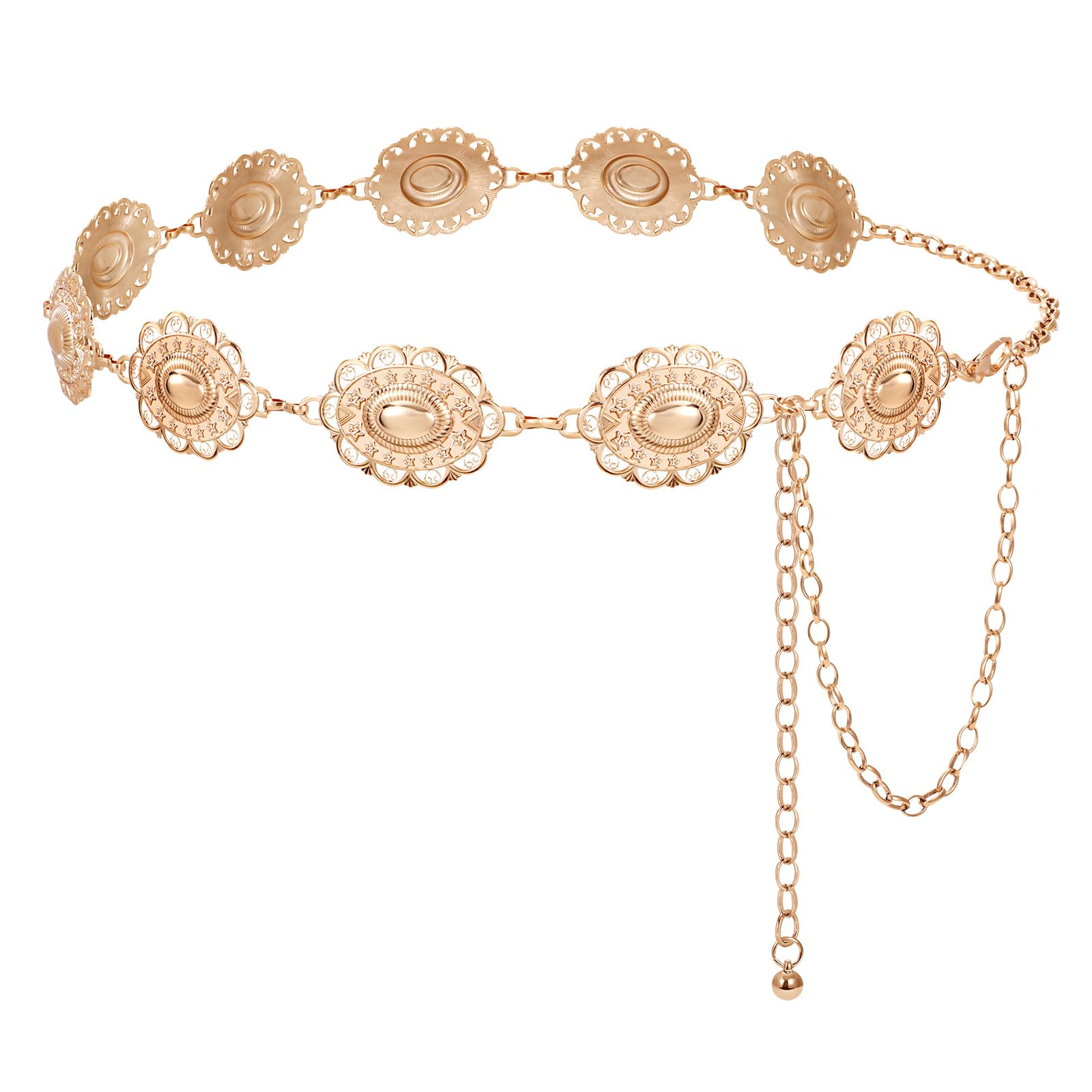 LEACOOLKEY Western Metal Concho Belt for Women Cowgirl Boho Waist Chain Belt for Dresses Jeans Pants