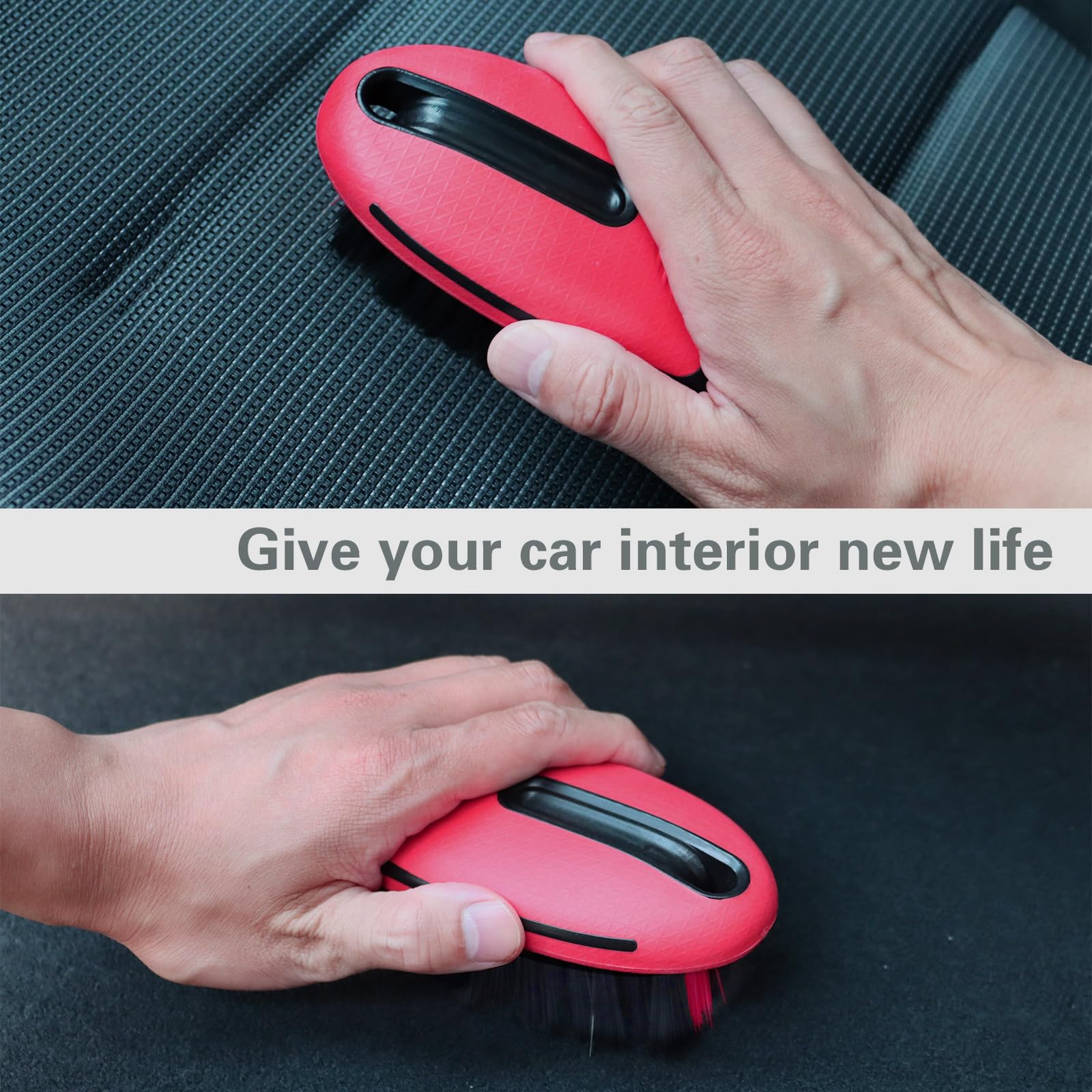 LoyaGour Carpet and Upholstery Cleaning Brush,Carpet Scrubber Stiff Bristle Detailing Scrub Brushes,Interior Leather Brush for Car and Home (Red)