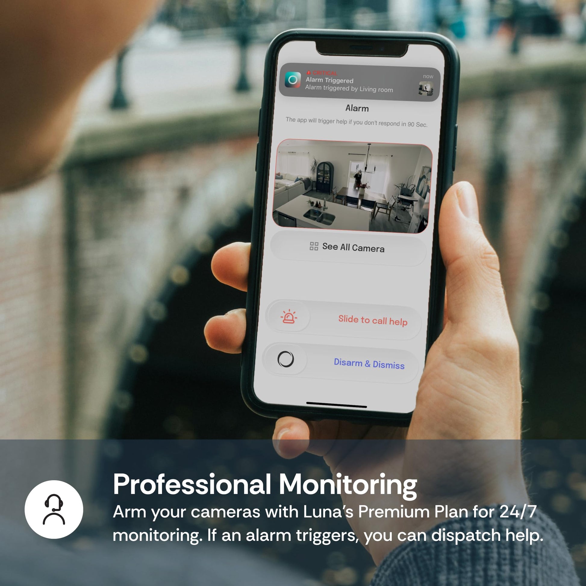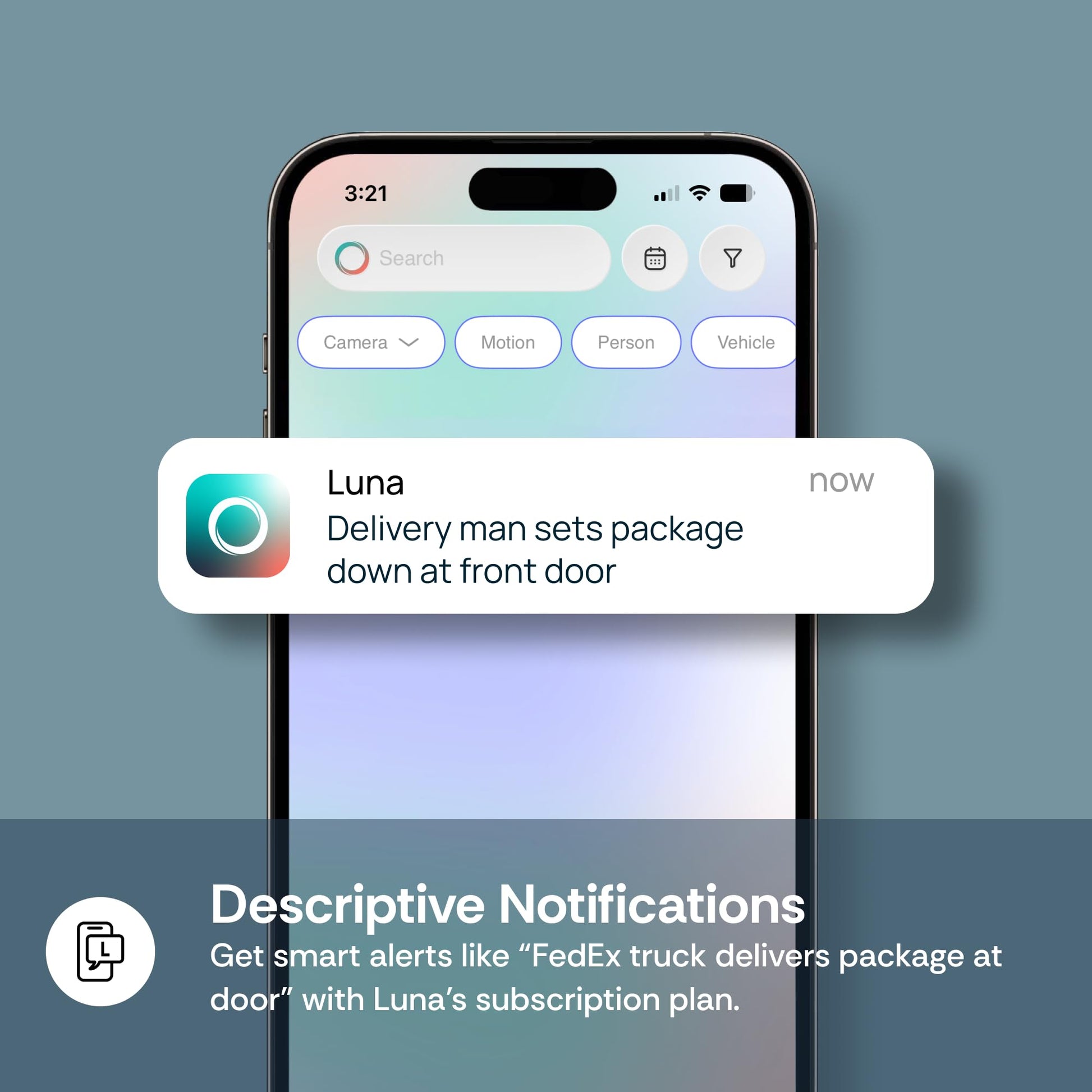 - Two-Way Audio & Night Vision: Stay connected with clear two-way audio, enabling communication from anywhere anytime through the Luna AI app. Infrared night vision ensures clear visibility even in low-light conditions, providing round-the-clock surveillance.