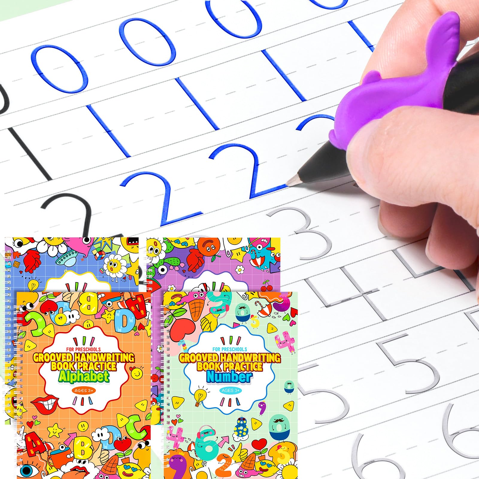 - š¦Magic Practice Copybooks are much larger than other copybooks on the market.The package includes 4 magic practice copybooks for Kids (Puzzle Gamesļ¼Numbers , Alphabet, Drawing) + 2 Pens + 2 Pen Holding Aids + 10 refills