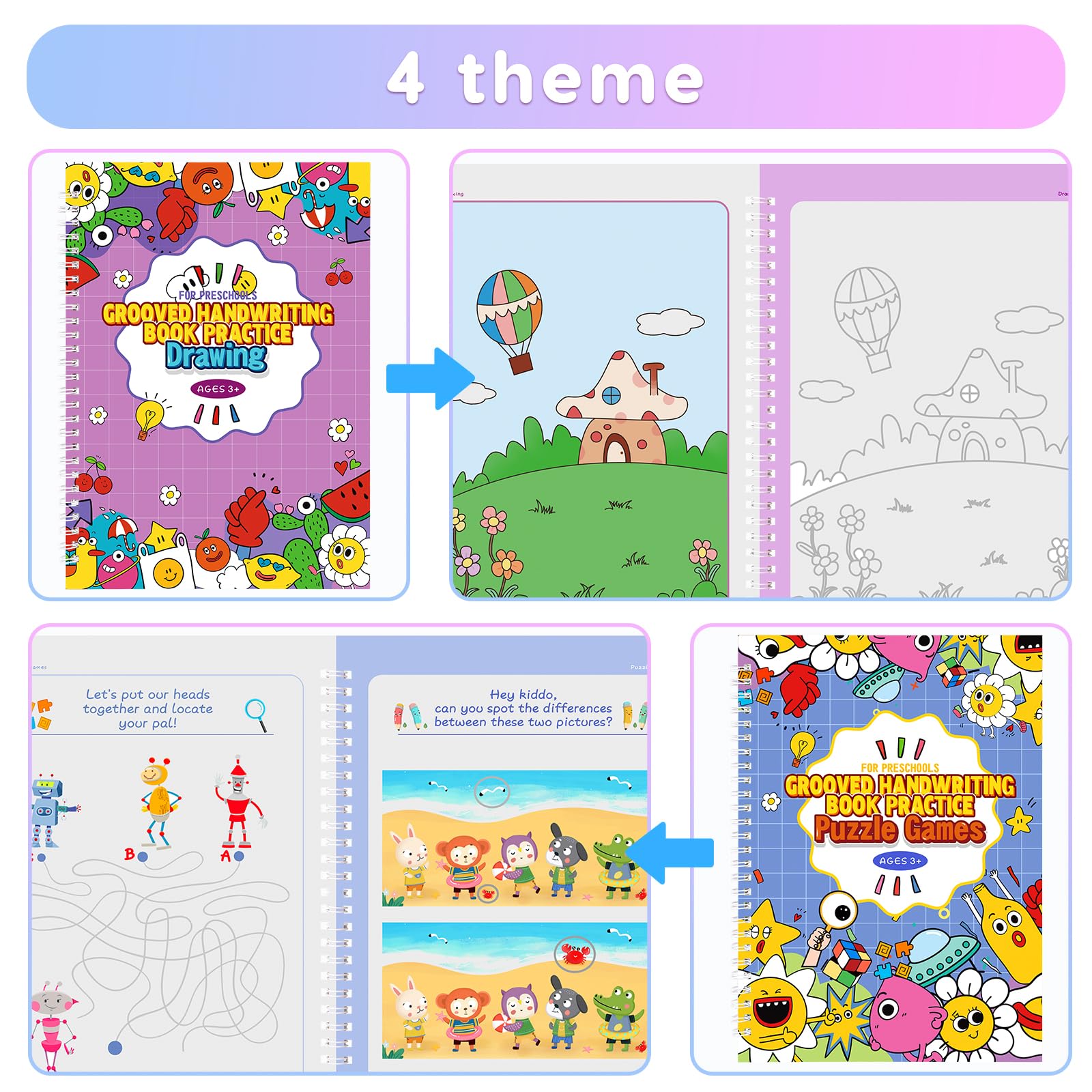 Magic Practice Copybook, Reusable Writing Practice Book, for Preschool Kids Age 3-8 Calligraphy (4 Books with Pens)