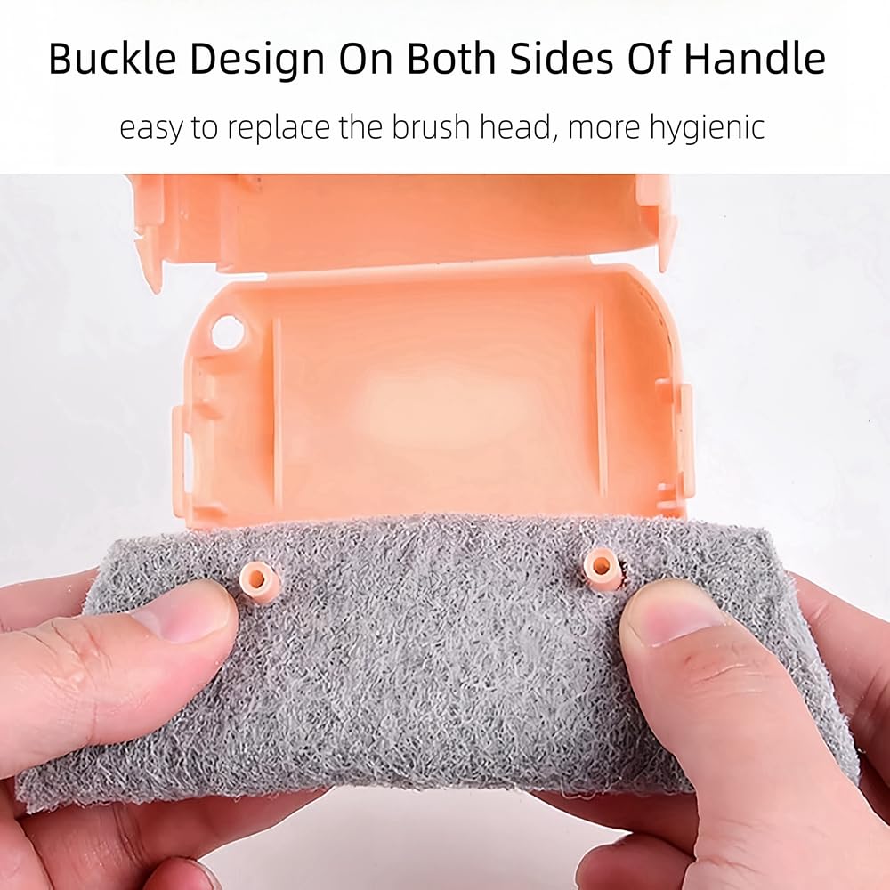 - 【Replacement Sponge & Sturdy Material】PP material handle, comfortable grip, fixed brush head design scouring pad material, good cleaning power, can clean door and window slides and gaps, etc., easy and effortless.Easily swap out the scrubbing sponge for a fresh one, maintaining hygiene and cleanliness. Quick sponge replacement enhances the brush's effectiveness and cleanliness.