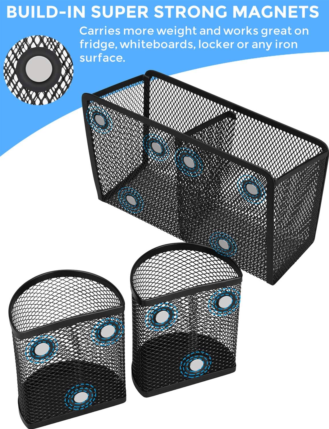 Magnetic Pen Holder, Metal Strong Magnet Pen Cup Magnetic Marker Storage Basket Locker Organizer for Whiteboard Refrigerator Fridge Locker Accessories Teacher Must Haves Classroom School Supplies