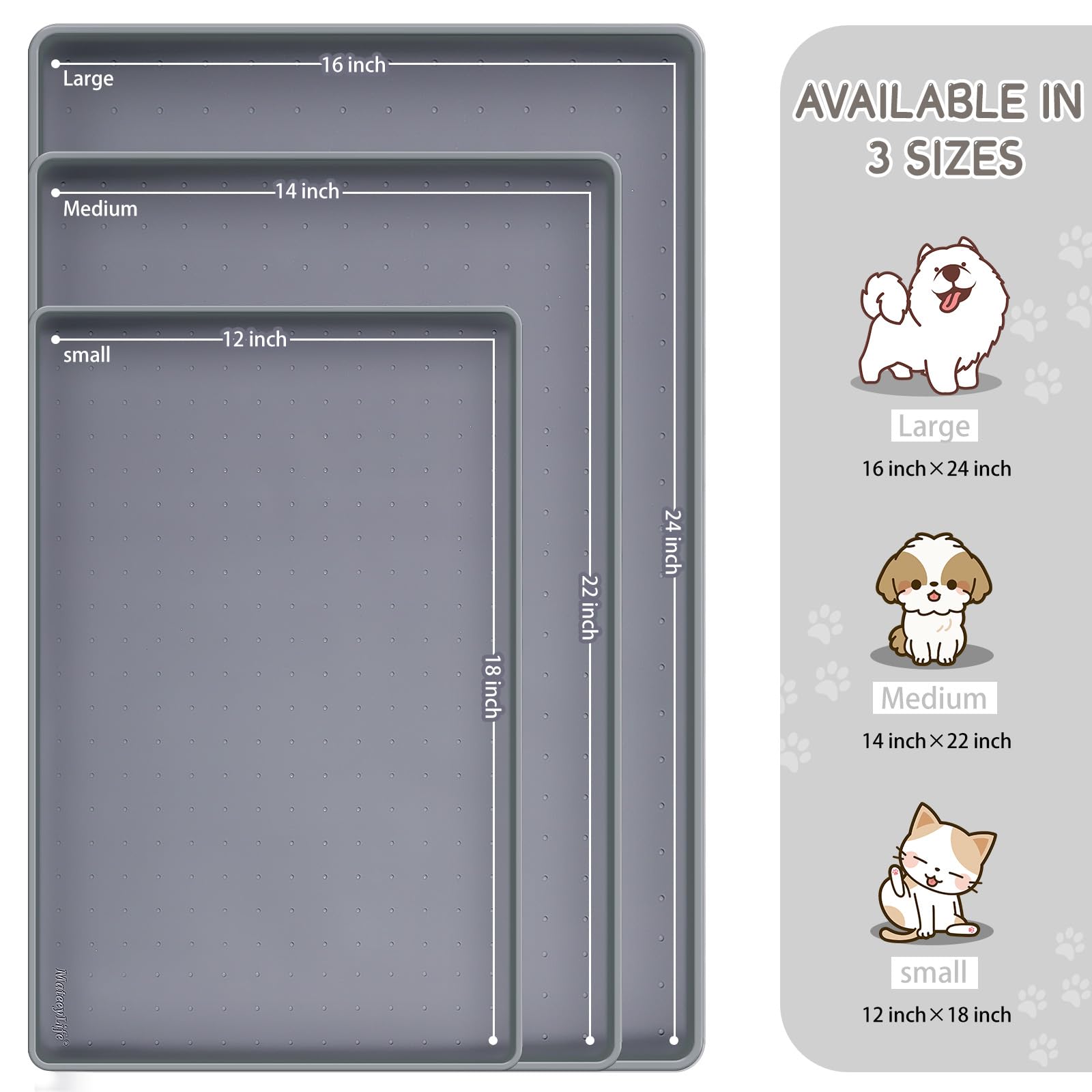 - Multiple Sizes & After-Sales: Service Our cat feeding mat and dog dish mats for floors waterproof come in 3 sizes and 8 colors, making them ideal for pets of all sizes. The dog food trays for floors can also be used as a rubber shoe mat tray, under sink mat, under sink tray, cat litter mat and litter box mat. If you have a chewer, please supervise him/her while using the cat bowl mat and dog bowl mat waterproof. Any issues, please feel free to contact us