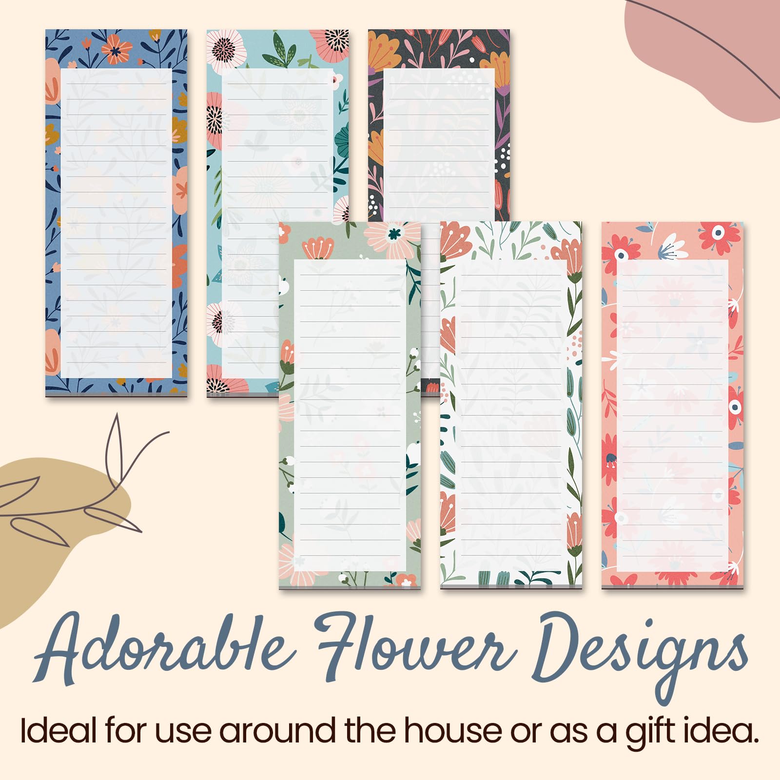 MATICAN Grocery List Magnet Pad for Fridge, 6-Pack Magnetic Note Pads Lists, 60 Sheets Per Pad, 6 Cute Floral Designs, Full Magnet Back To-Do-List Notepads