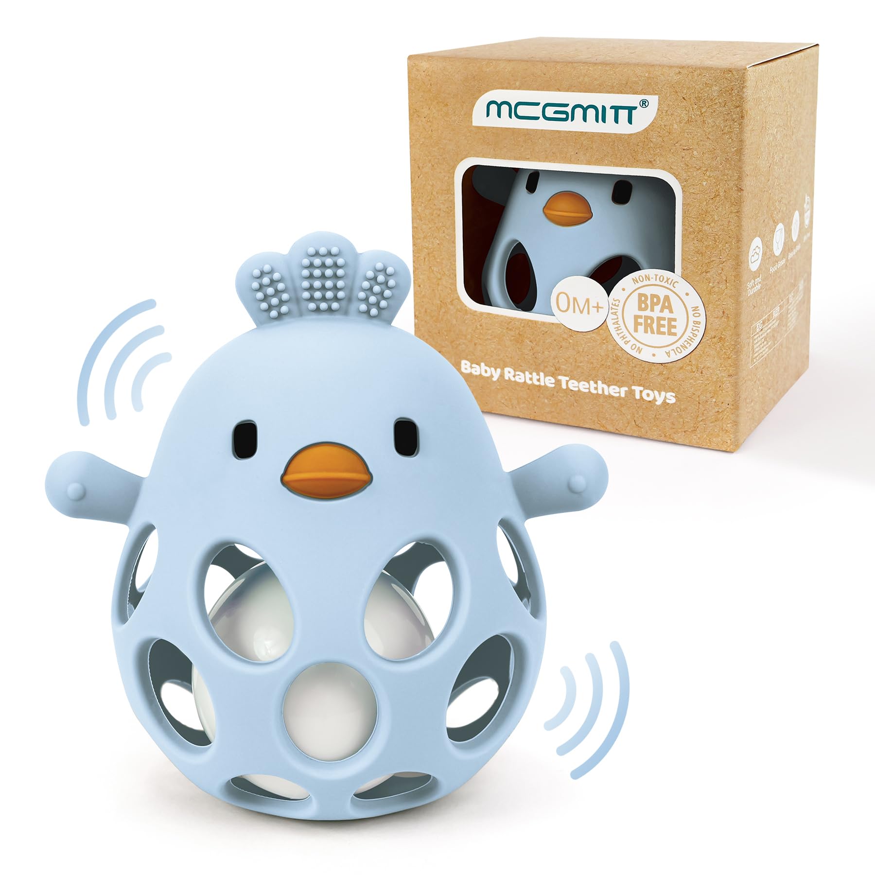 MCGMITT Baby Teething Toys for 3-6 Months, Easy Grasp Silicone Baby Rattles 0-6-12 Months, BPA-Free Food Grade Montessori Sensory Toys, Soft Newborn Infant Teether for Teething Relief