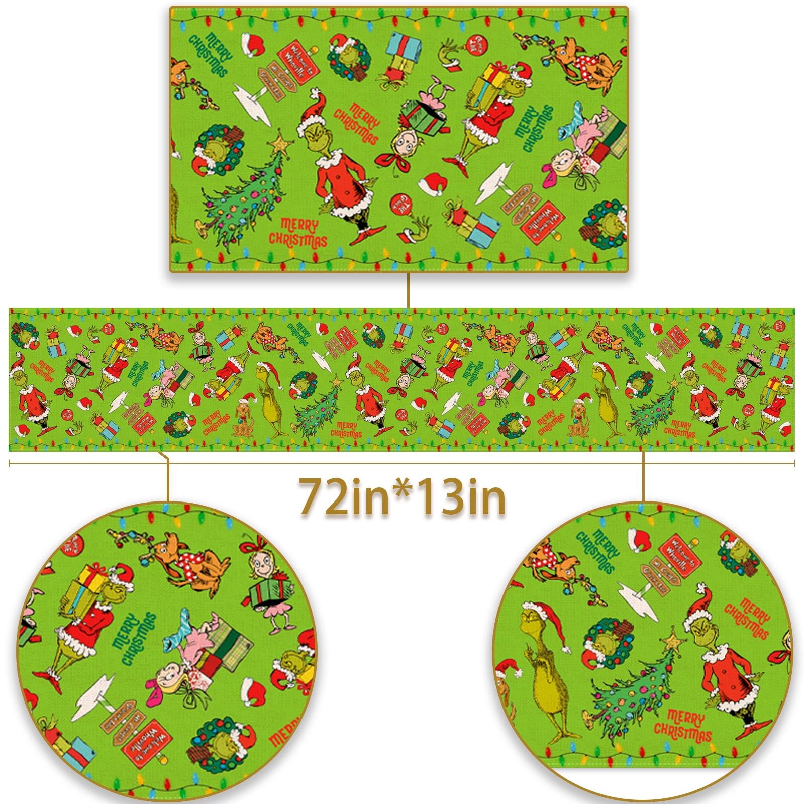 Merry Christmas Table Runner Christmas Xmas Winter Holiday Season Party Decorations Kitchen Fireplace Dining Room Home Decor (Green, 13" x 72")