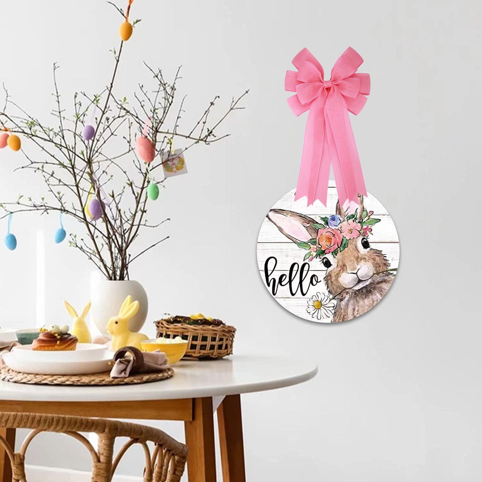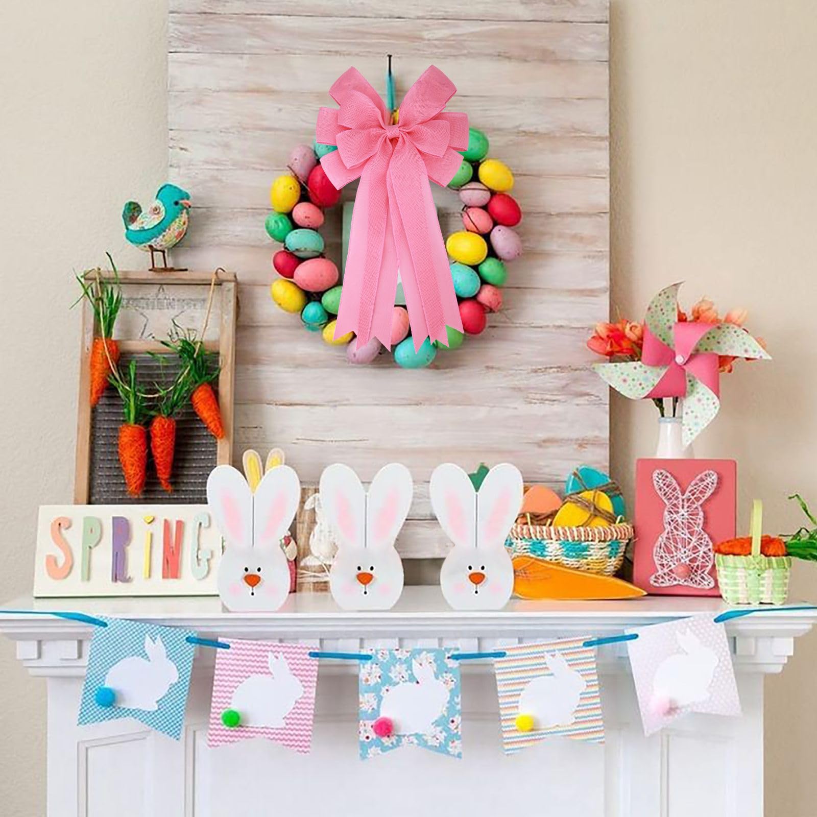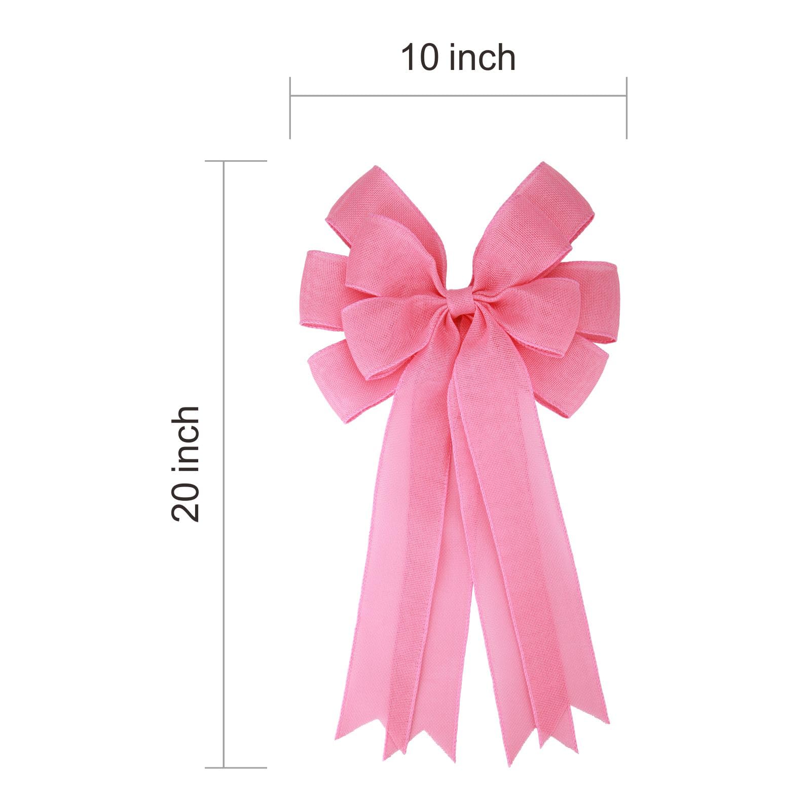 Meseey 2 Pcs 20 x 10 Inch Large Pink Burlap Bows Easter Wreaths Bow for Gift Wrapping Spring Tree Topper Front Door Home Decorations (Pink)