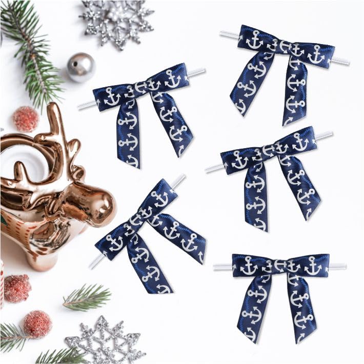 - About Size : Each twist tie nautical anchor ribbon bows measures about 7.5x 7.5cm/3 x 3 inch, the proper size makes it an eye-catching decorative ornaments . Use them to give your wrapping bags or boxes an outstanding look on your holiday party that will create a cheerful festive atmosphere