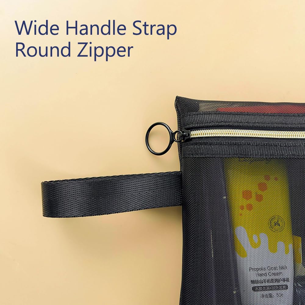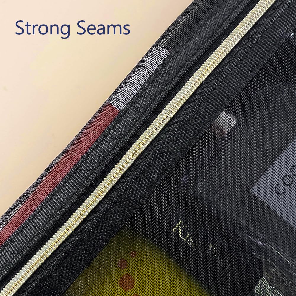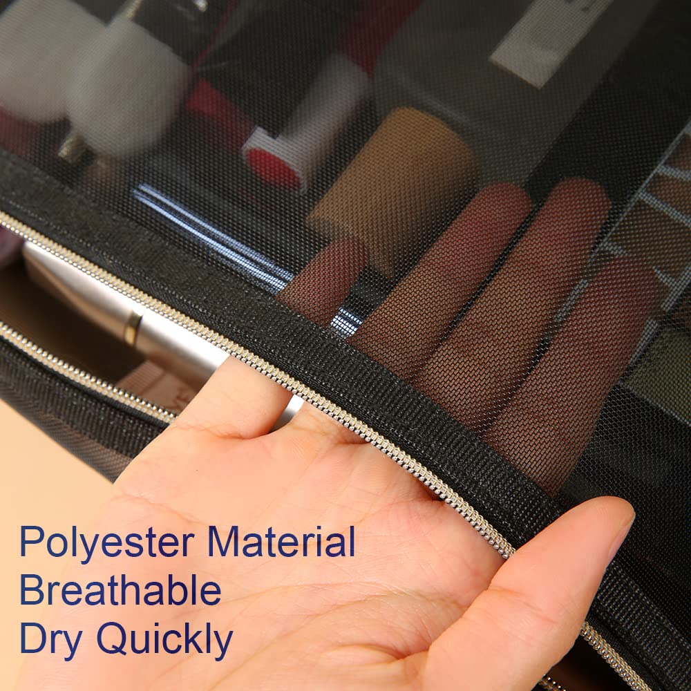 - 【Visible Mesh】Makeup mesh bag is made of black mesh material, lightweight and see through, no need to pour out all your item to find it. Keep everything you need organized and easily accessible.This bag also comes equipped with a handy strap, so you can hang it for storage.