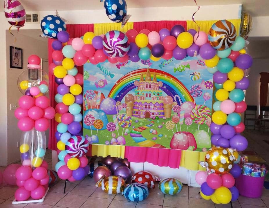- Usage: Suit for your sweet candyland birthday baby shower party, photography background, party decorations, portrait photography, festival holiday decor; can be customized with any size and creativity; Easy to use depen on backdrop stands; Add more fun to your party. Let every detail contribute to an atmosphere filled with joy and happiness, ensuring that your party is an unforgettable experience for everyone involved.