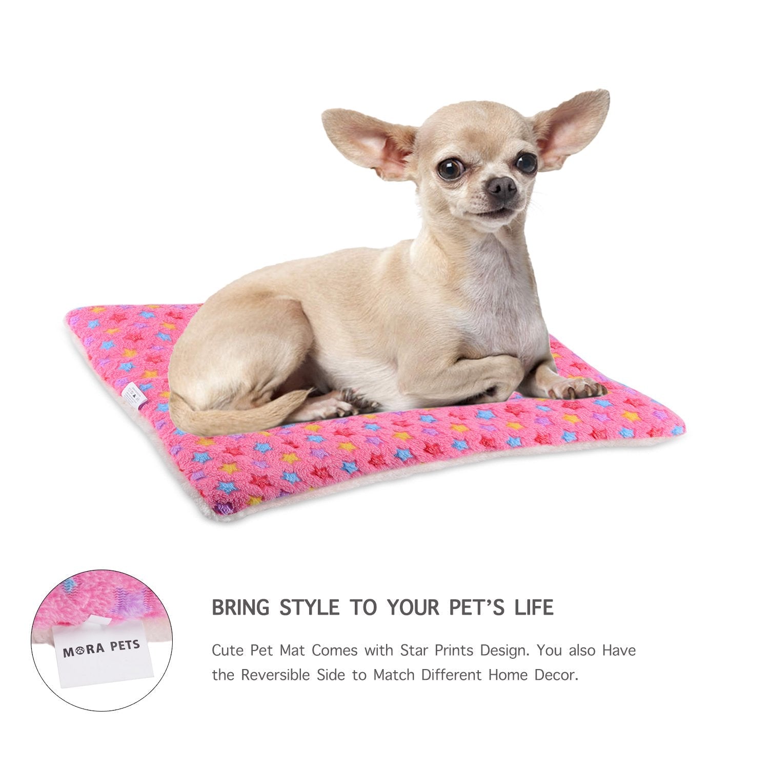 Details: Our cute mat comes in 3 different colors to give you the best choices for your pet. Mora Pets cute pet mat, extra small Ideal for small pets, such as cat and puppy Designed for crates, carriers, vehicles and on furniture Can also be used to add extra comfort to your pets bed Dual Sided Comfy Mat Top Soft Flannel with Star Designs Bottom Fluffy Fleece with traditional milky color Filled with cotton for extra comfort Convenient and Foldable Lightweight design allows for easy carry Foldable material makes it convenient to store Completely machine washable Mora Pets sells quality pet supplies for customers in the U.S. We focus on bringing style into your pet's life. As our valued customer, you can always return the item for free exchange or full refund.