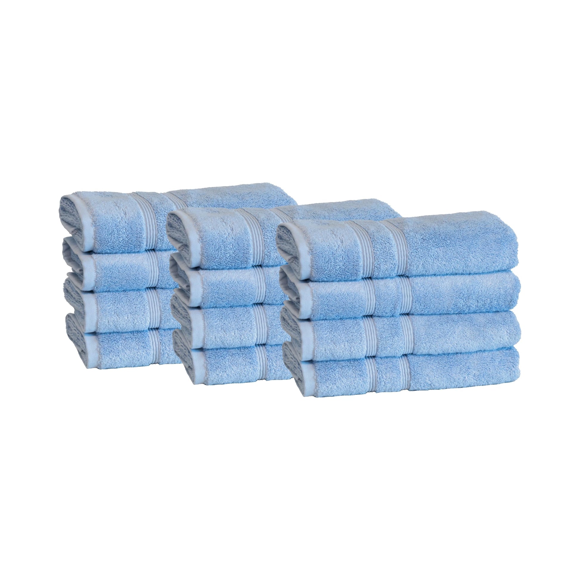 - Extremely soft and gentle on skin while maintaining high absorbency and durability. Odor-resistant, super fluffy, and quick drying. Specially designed to resist common sources of fading, discoloration, and snagging. Dense-loop terry dobby design with elegant borders and hemmed edges make these great guest bathroom décor or gifts. May be used in bathroom, kitchen, or the gym. Smaller pieces are great for dishes, newborn babies or infants, erasing makeups or cleansing body in a nice shower.