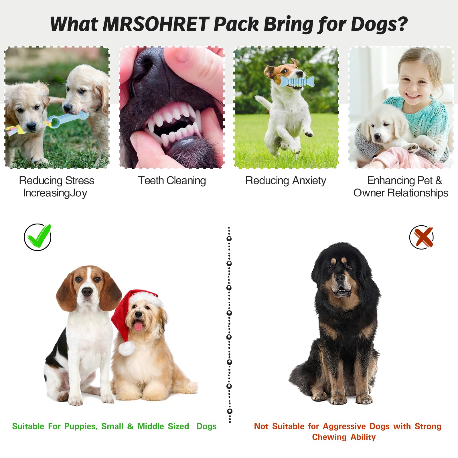 - Safe Puppy Chew Toys for Teething: MRSOHRET puppy teething toys are made of safe natural rubber and soft cotton braided fabric.The rubber toy part is very durable,neither too hard nor too soft,bite-resistant,safe,healthy, without any strong rubber smell,very easy to clean