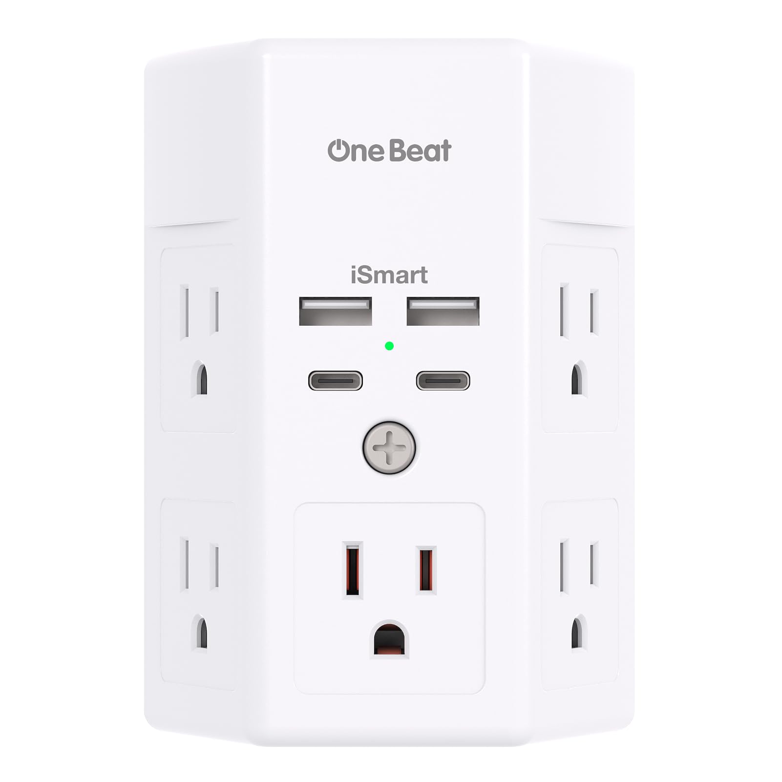 - 【9-in-1 Multi Plug Outlet with Widely Space】 Unique 3 Side Design Power Strip with 5 AC outlets (1875W) and 4 USB ports(3.1A Total); One Beat outlet splitter with 2.1 inches long space in between, can charge 5 big plug at the same time without blocking. With built-in 1800 Joules surge protector that meets most of your needs in life, allowing multiple devices to be charged simultaneously.