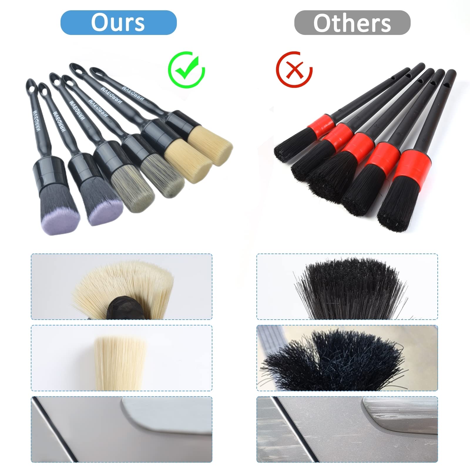 - [VERSATILE CLEANING] 2pcs Yellow Boars Hair Brush Car Detailing for Cleaning both Exterior and Wheel and More, 2pcs Multicolor Detailing Brushes for Cleaning Both Interior and Exterior of Your Vehicle,2pcs Black Ultra Soft Synthetic Bristle Detailing Brush Kit for Cleaning Interior Dashboard Leather Seats, Perfect for Cleaning Every Nook and Cranny of Your Vehicle