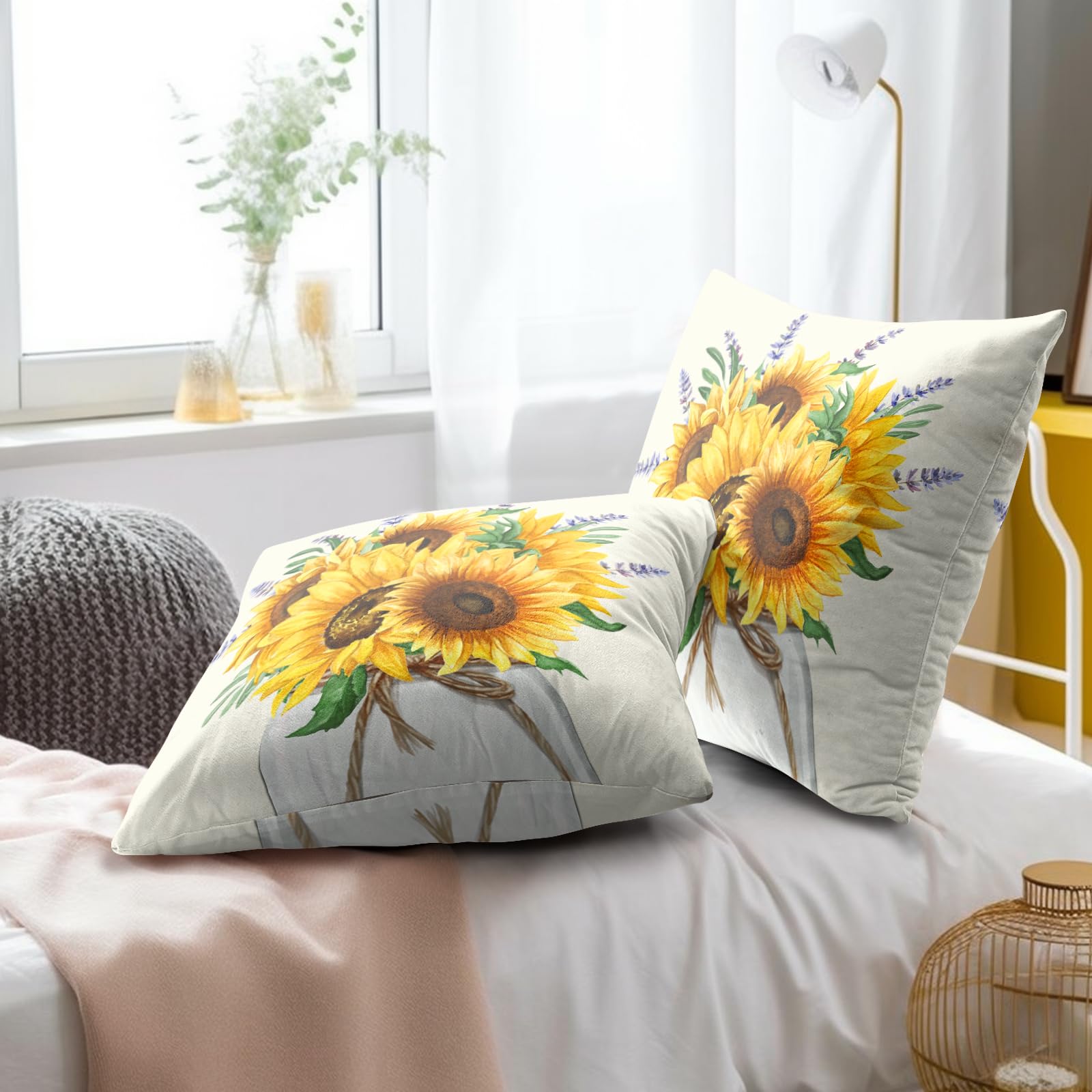 - 【High Quality Material】-These sunflower pillow covers are made of high quality classic soft cotton fabric that is super soft, comfortable and warm to touch. Accompanied by the top quality invisible zipper and allows easy insertion and removal of inserts.