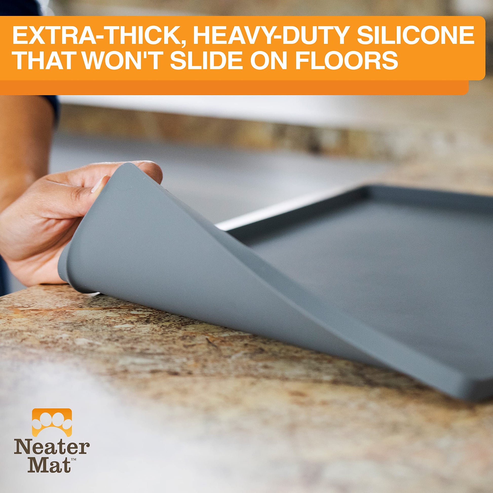 Neater Pet Brands Neater Mat - Waterproof Silicone Pet Bowls Mat - Protect Floors from Food & Water (19" x 12", Gunmetal)